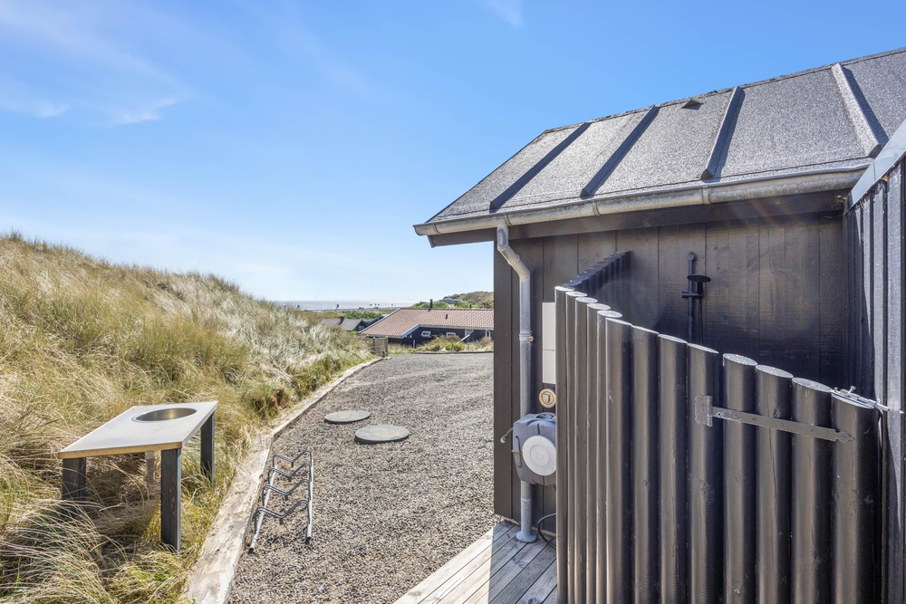 Det skønne sommerhus ligger ikke langt fra byen, og vil I på indkøb, er der kun 1300 meter til købmanden. Hvis I vil ned til en af byens restauranter om aftenen, kan I også tage en hyggelig gåtur dertil. Når I om dagen vil til stranden, er der faktisk kun 250 meter hertil. En lille gåtur over det næsten uberørte klitlandskab er en skøn tur, som I vil nyde. Når I kommer tilbage til sommerhuset, kan I skylle tæerne under udebruseren, som er tilgængelig fra april til november.