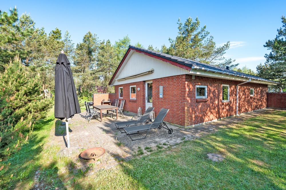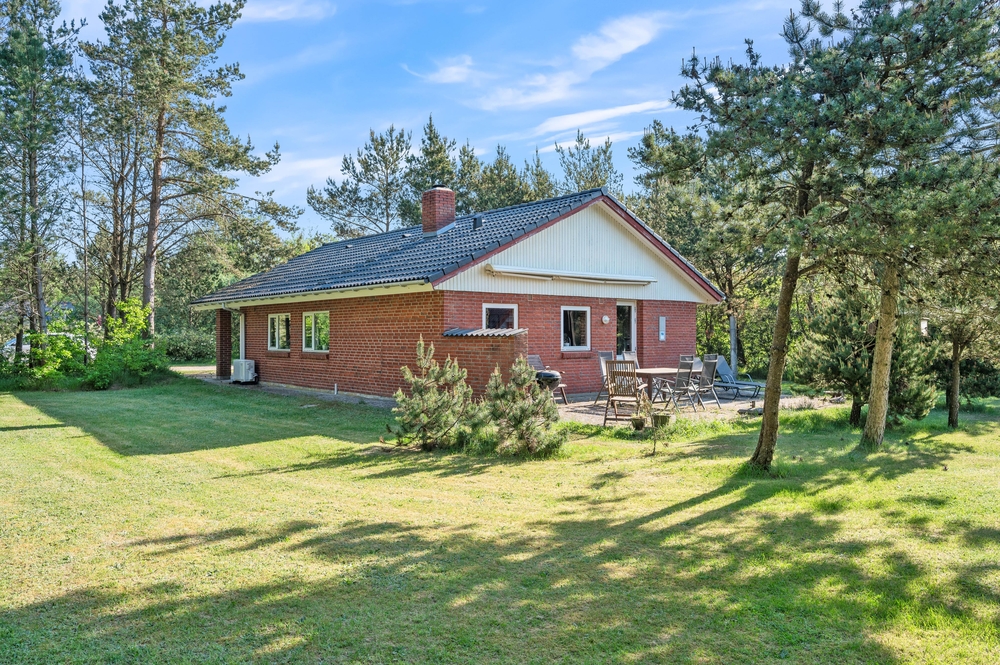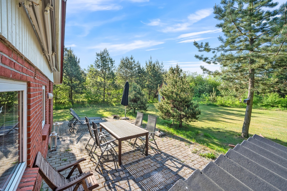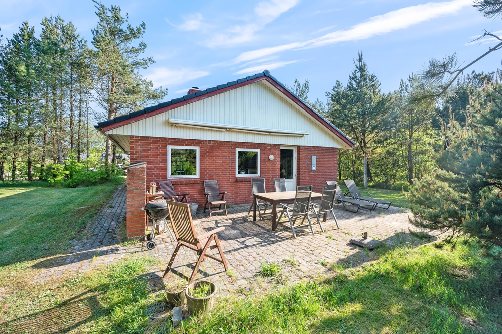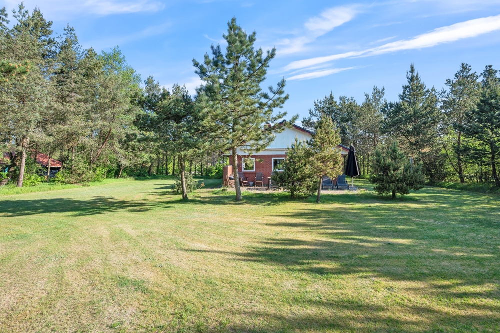 Sommerhuset, der blev renoveret i 2017, har 3 soverum med plads til 6 personer. Derudover er der en stor, åben, sydvendt terrasse med både havemøbler, solvogne og grill. Store træer omkranser og giver læ til store dele af den store plænegrund på hele 1414 kvadratmeter, hvor der er plads til fri leg og hyggelige stunder.