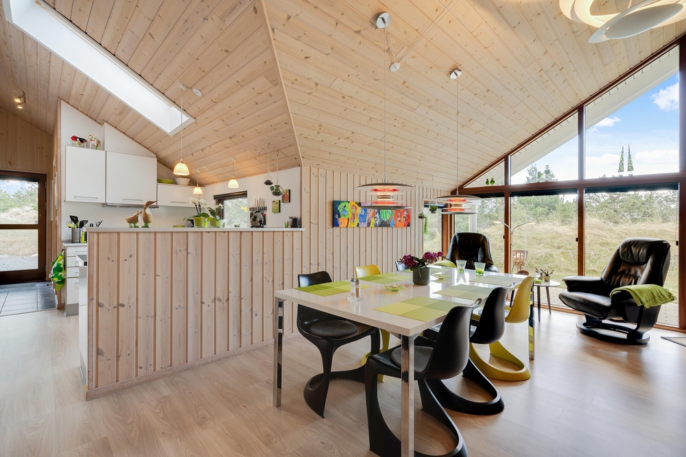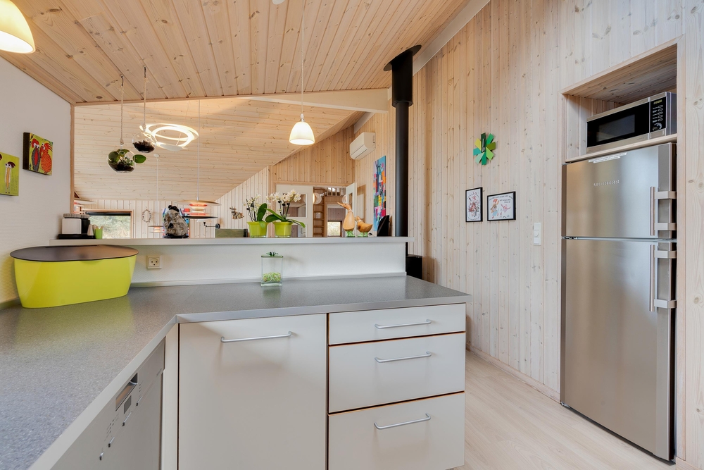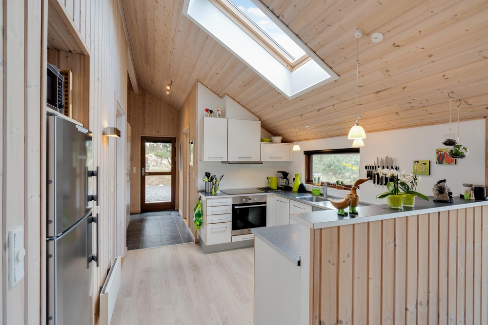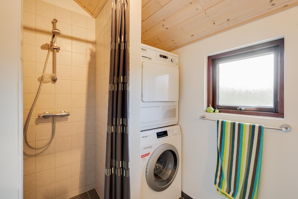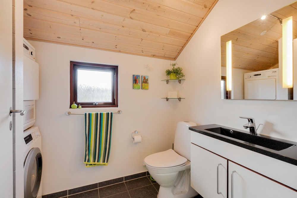 I feriehuset har I også mulighed for at bruge ekstra tid på afslapning, for her har I gode praktiske faciliteter, der letter husarbejdet for jer. På det mindste badeværelse er der vaskemaskine og tørretumbler, og i køkkenet er der en opvaskemaskine.