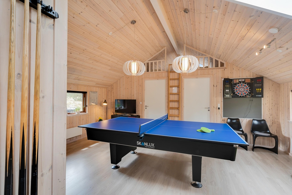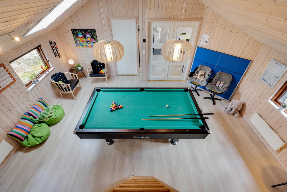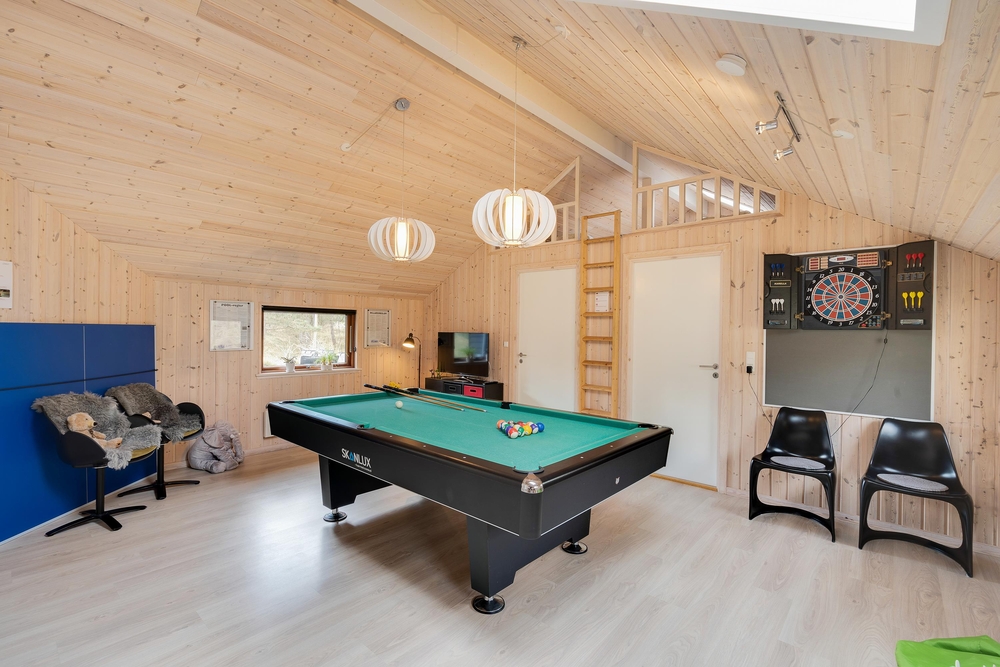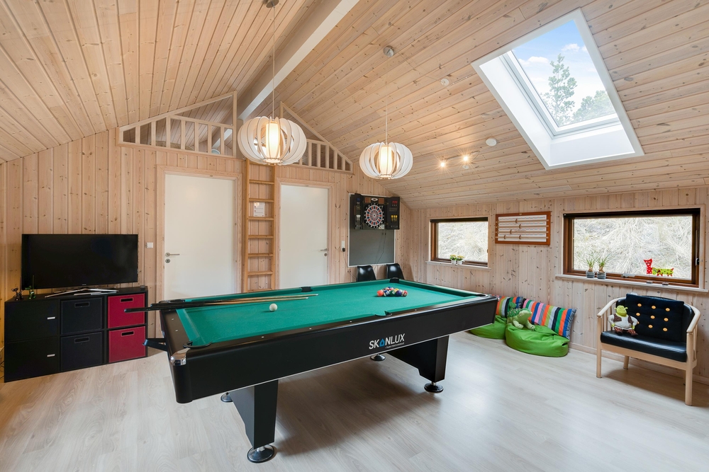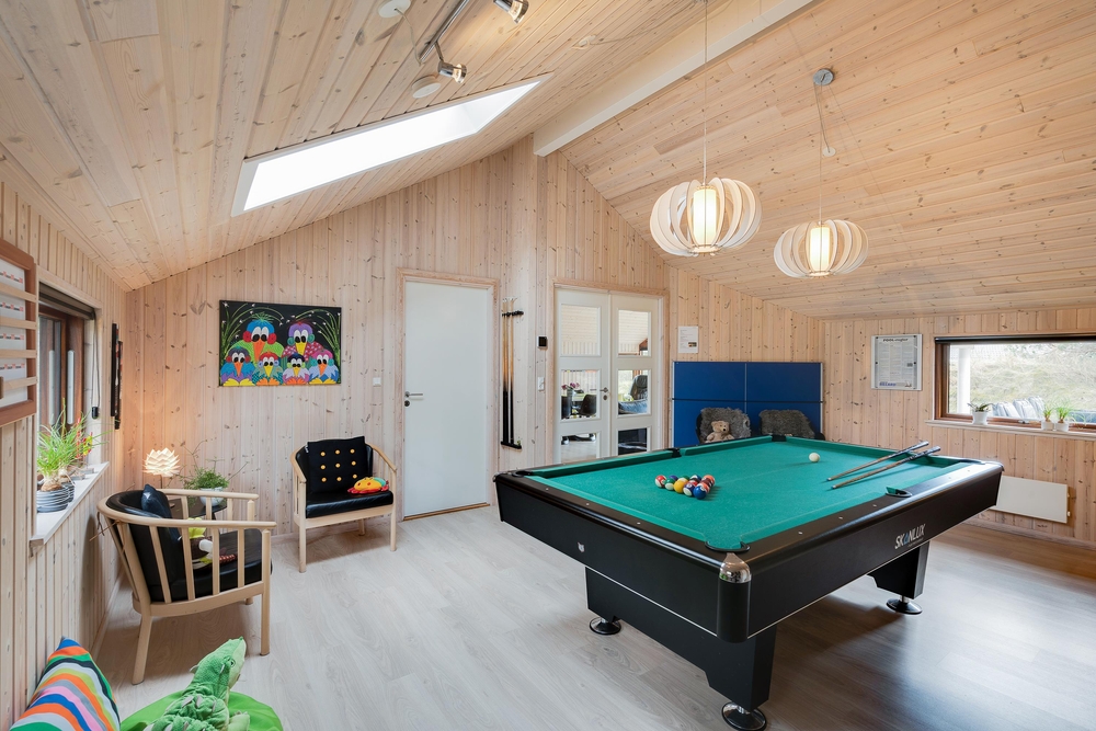 Ligesom der er rig mulighed for masser af afslapning i sommerhuset, er der også rig mulighed for masser af underholdning. Her skal I blot søge mod sommerhusets aktivitetsrum, hvor I kan spille både billard, bordtennis og dart.