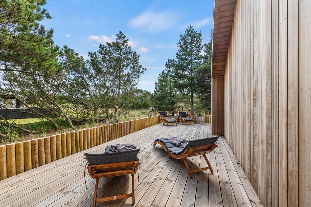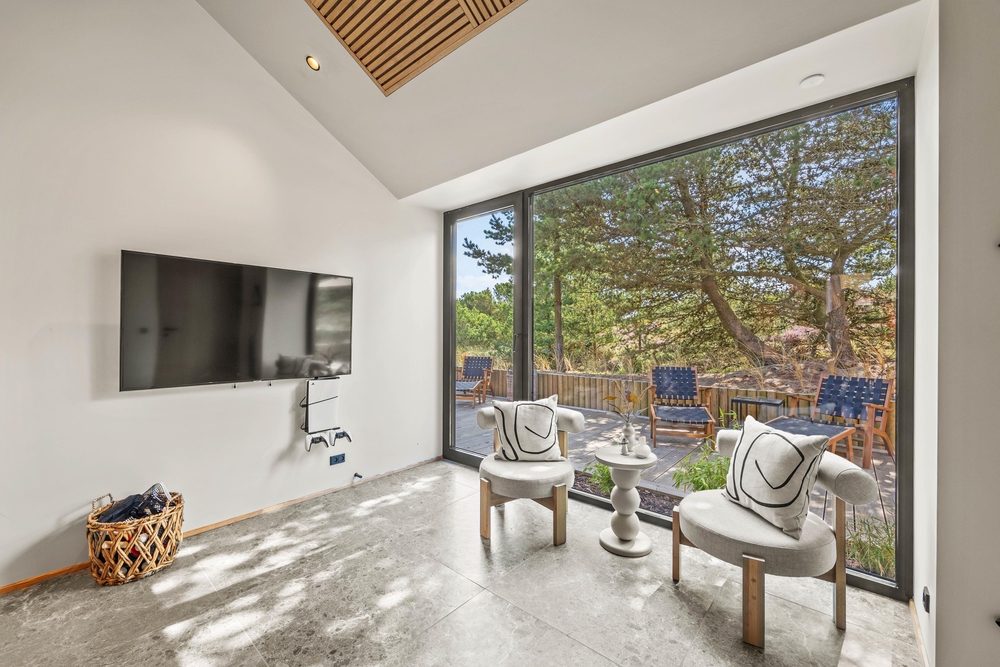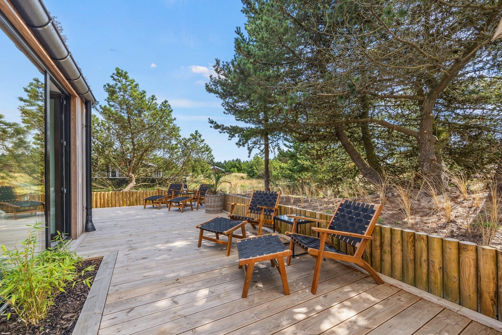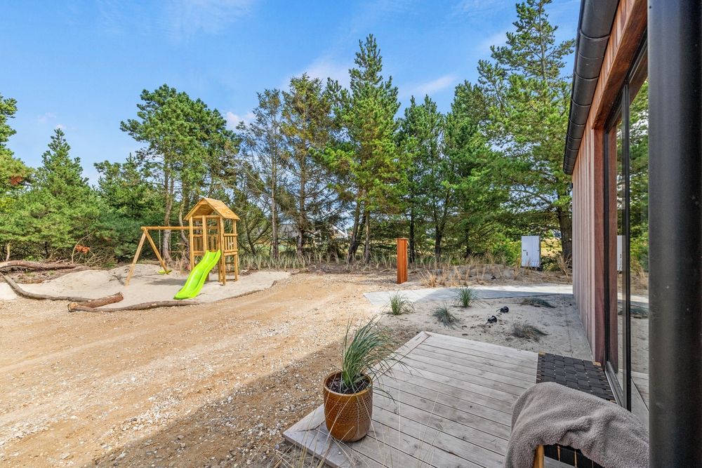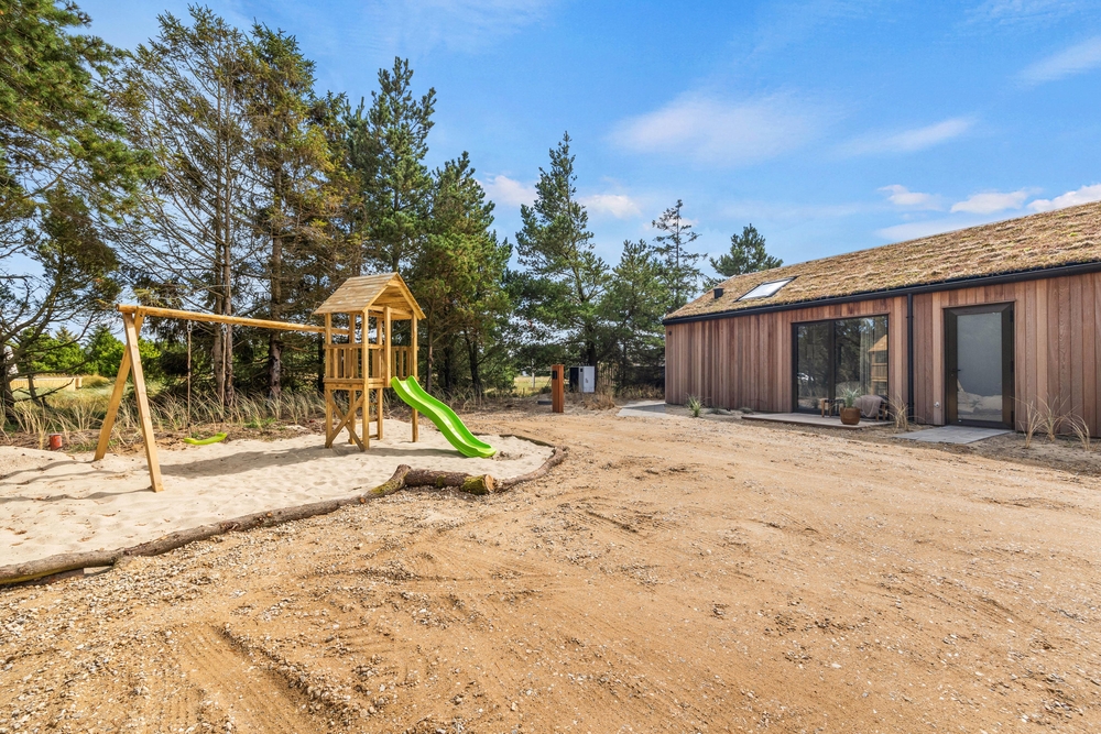 På Søren Gades Mark 16 er der i 2024 færdigbygget et nyt luksushus, der indeholder alt, hvad I kan ønske jer til en uforglemmelig ferie ved Blåvand. Ikke nok med, at I kan slappe af foran pejsen eller tage et spil billard, der er også en 19 m2 swimmingpool med svømmetræner og en udendørs 5-personers spa og sauna.