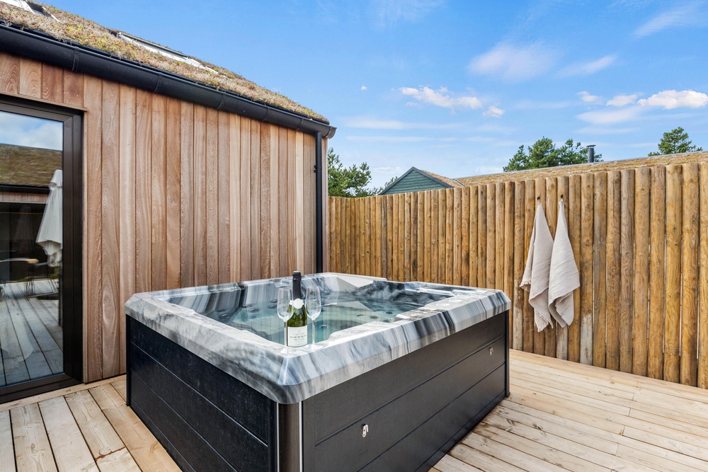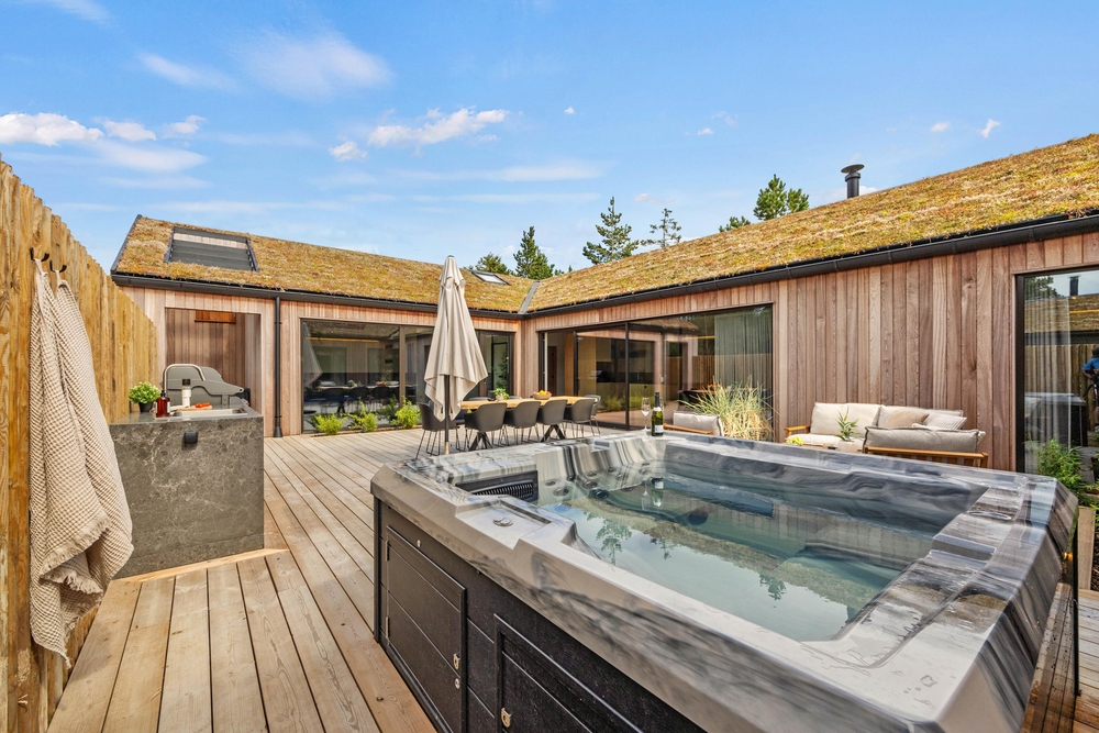 Udover den flotte indretning, de lækre faciliteter og de luksuriøse detaljer, så er sommerhuset også topisoleret og udstyret med energibesparende løsninger som eksempelvis varmepumpe og en ladestander til jeres el-bil (husk ladekabel/adapter).
