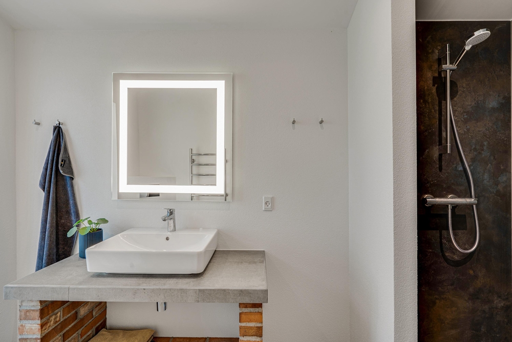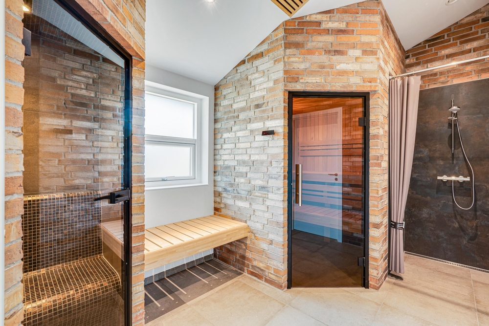 Efter en god træning i fitnessrummet er det på sin plads med en dejlig, afslappende stund, hvor I kan få kroppen helt ned i gear igen. Når I trænger til ekstra afslapning på ferien, er der mulighed for det på terrassen, hvor der står en lækker udespa klar til jer. Ellers kan I også søge mod det ene af sommerhusets badeværelser, hvor der både er en sauna og en dampkabine, I kan sætte jer ind i.