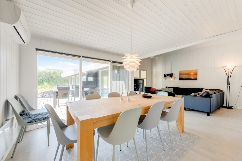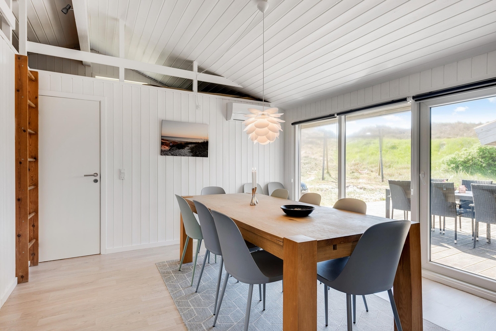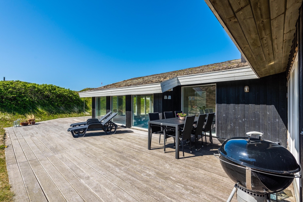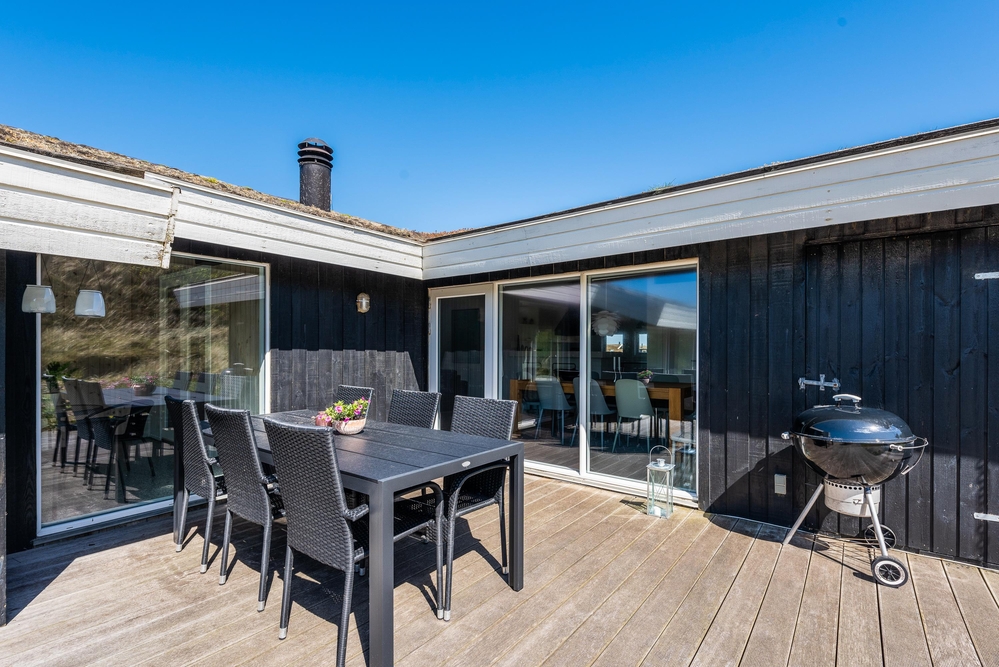 Aftenen kan byde på en lækker grill middag på terrassen, med god vin og Vesterhavets brusen, samt solnedgangen i baggrunden. Man kan også gå de 300 meter mod vest ? igennem det flotte klit landskab ? til Vesterhavet og nyde solnedgangen på stranden.