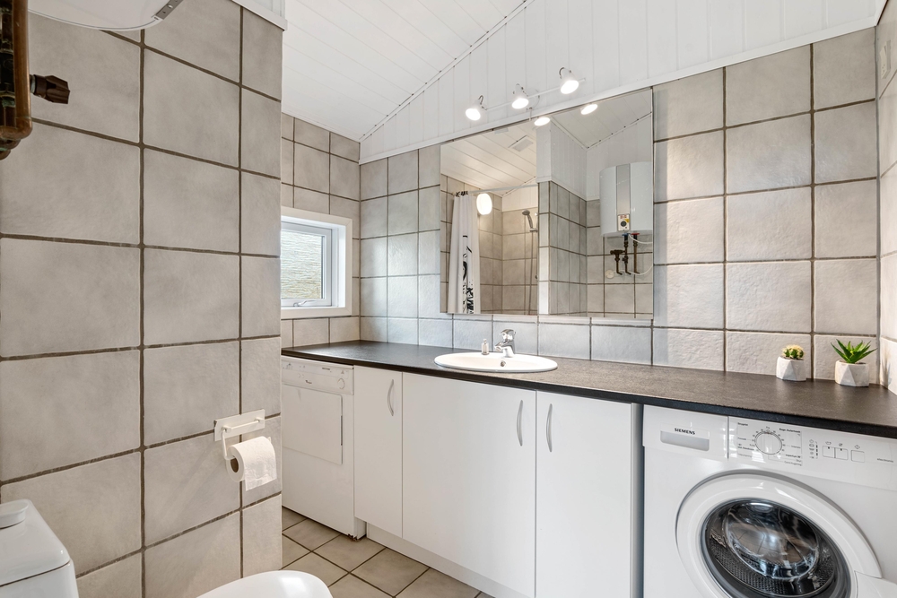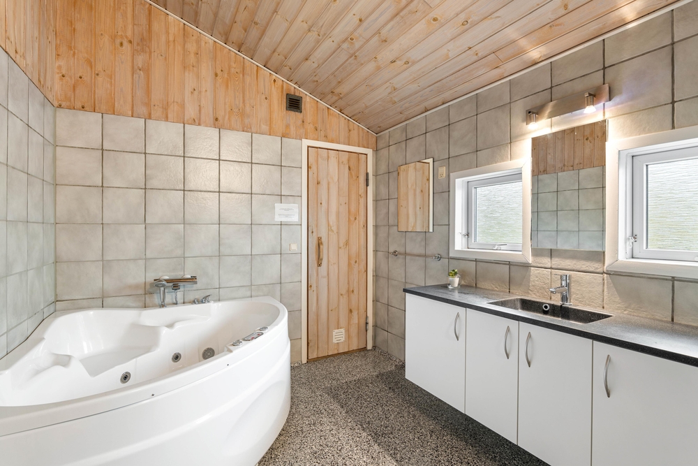 Huset råder over 2 badeværelser, hvoraf det ene er med spa og sauna ? og ligger i pool afdelingen. Det andet badeværelse indeholder vaskemaskine og tørretumbler, hvilket gør det nemmere at pakke til alt slags vejr ? og til enhver lejlighed. En varmepumpe i huset gør huset mere energivenligt ? og hjælper med at holde omkostningerne på et passende niveau.