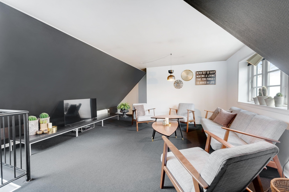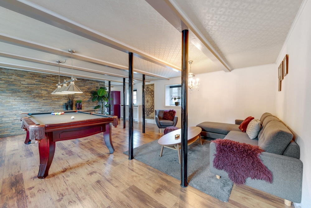 Vil man trække sig tilbage er en omgang billard en super mulighed. Også på førstesalen finder I gode muligheder for at hygge. I stuen ovenpå er der god plads til at kunne slappe af og se en (u)hyggelig film.