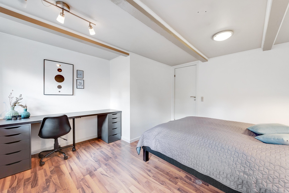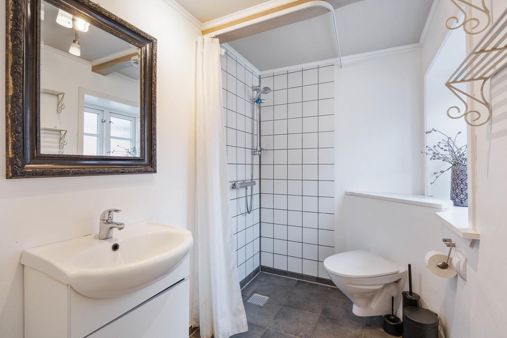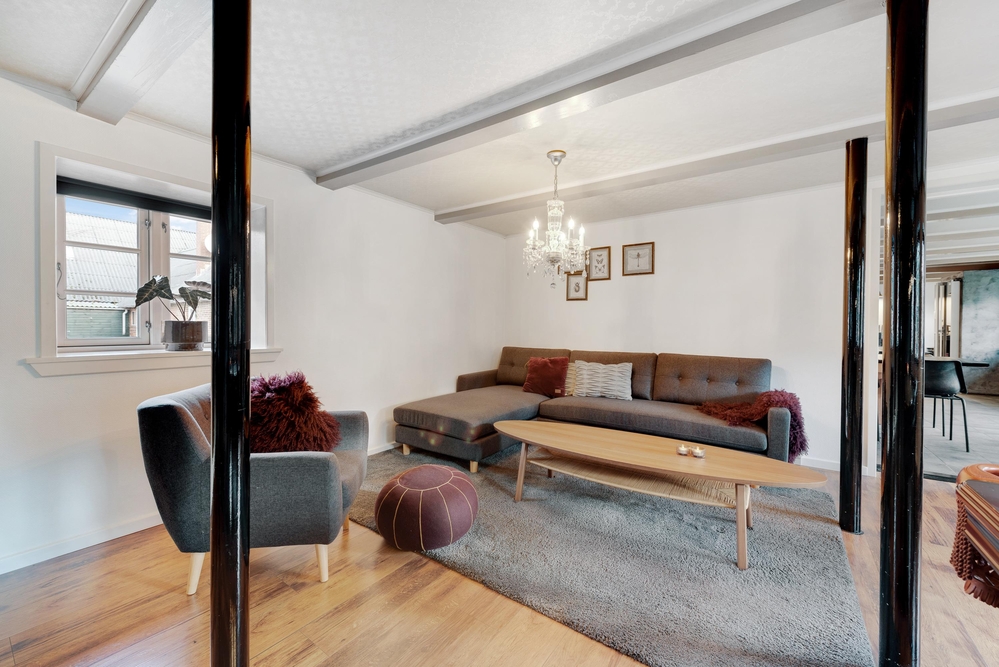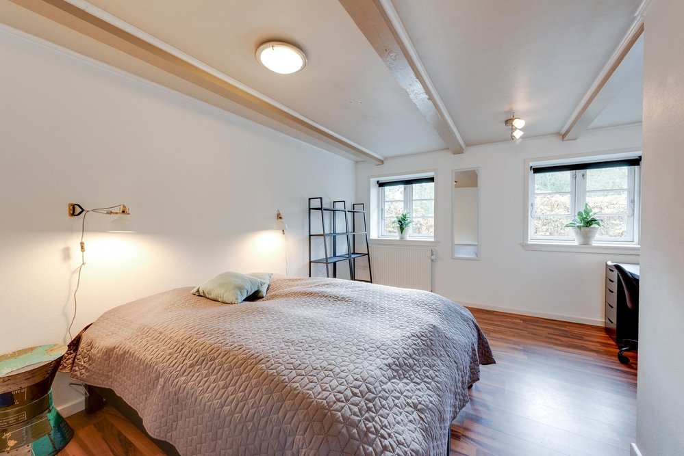 Ferielejligheden, der fordeler sig over to rummelige etager, er moderne indrettet med mange gode rustikke detaljer. I den store entre finder I en vaskemaskine og tørretumbler, der gør dagligdagen i lejligheden lidt lettere.