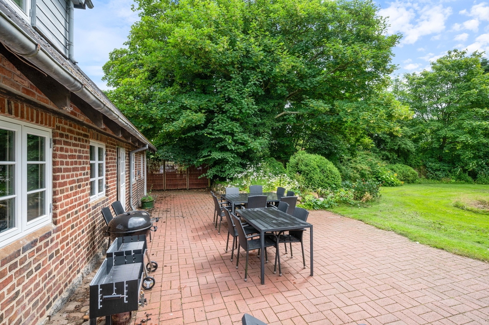 På det 30.000 kvadratmeter store græsareal er der masser af plads til alle mand at boltre sig på. Den er tilmed også ideel for jeres op til 3 hunde. Her er god plads til en omgang vikingespil eller fodbold. I det forskellige hyggelige hjørner i haven og på terrassen er der igen plads til, at man også kan trække sig tilbage eller sætte sig sammen.