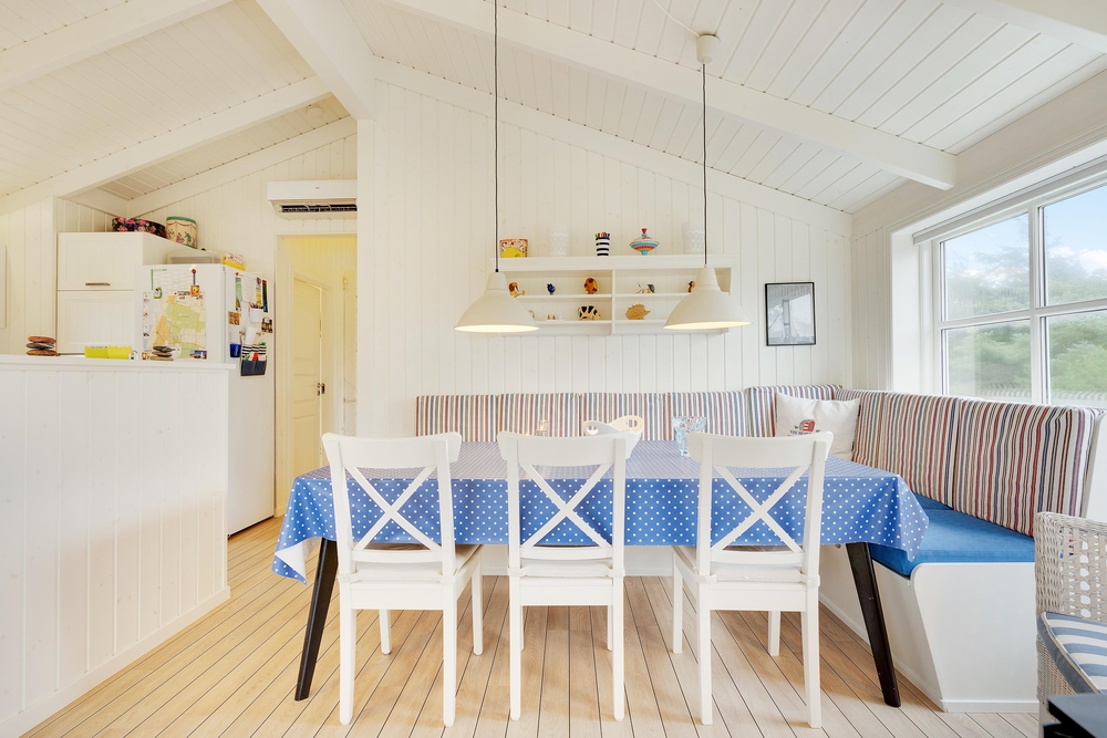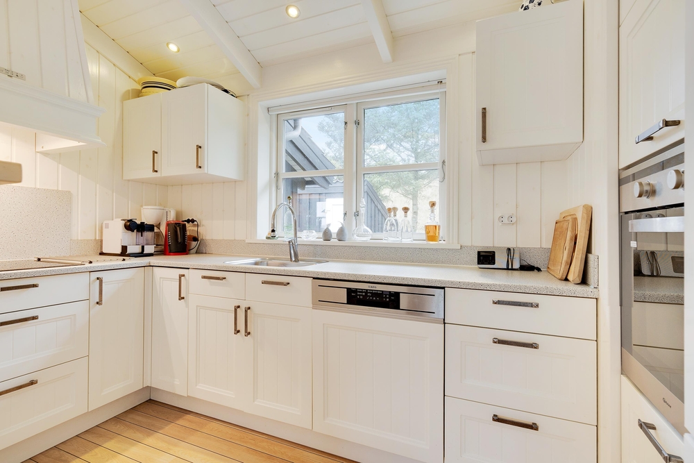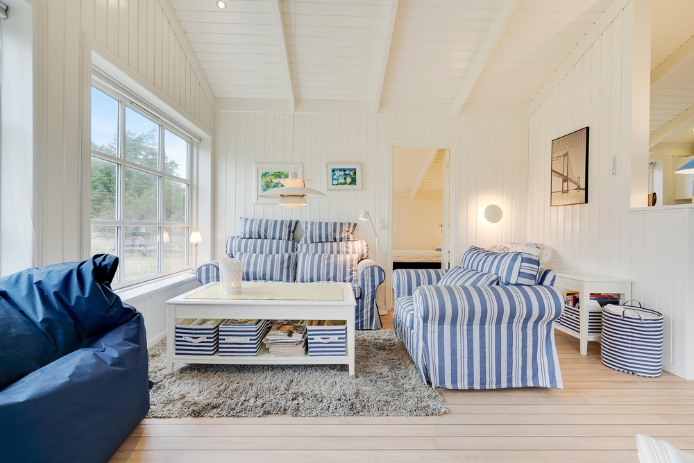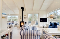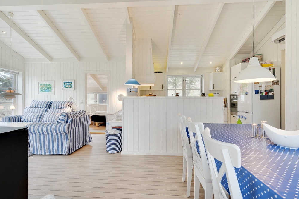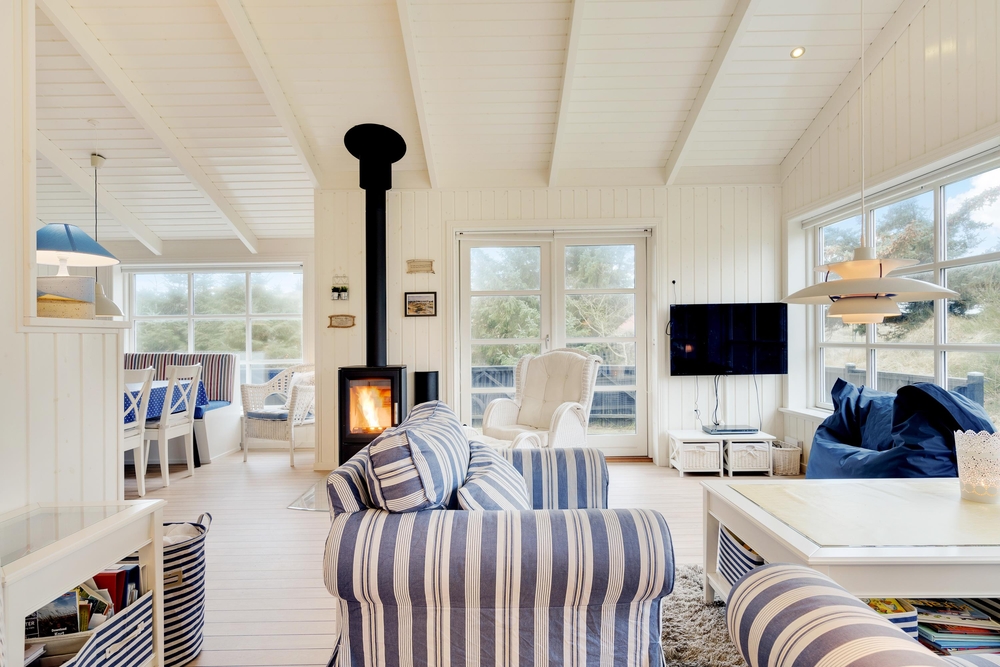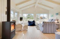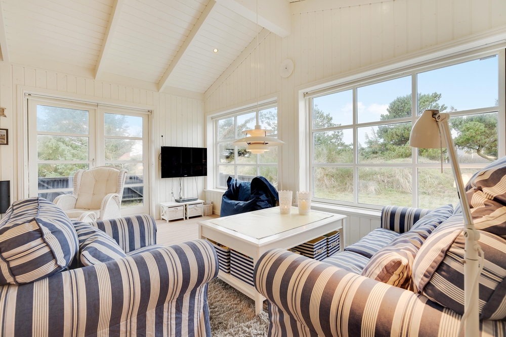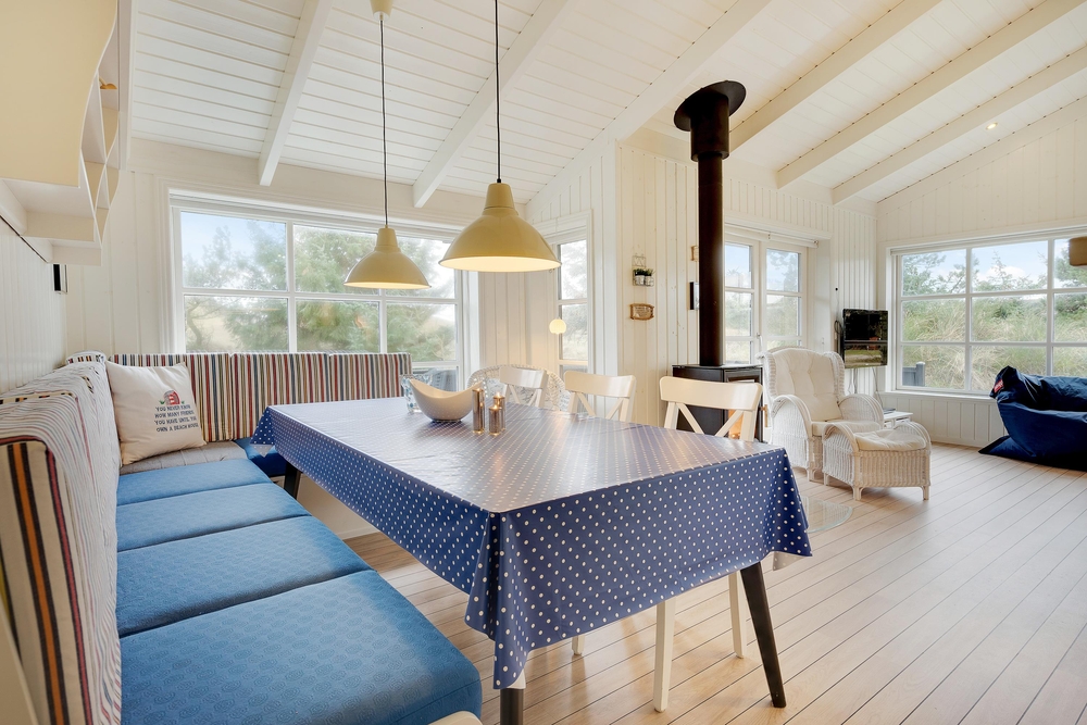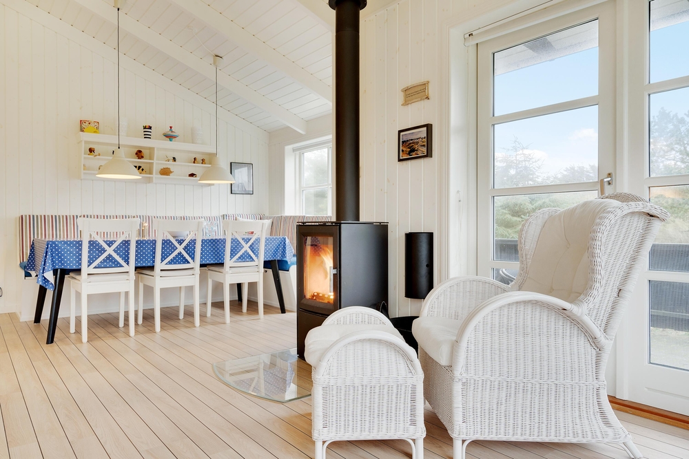 Her vil I helt sikkert føle jer godt tilpas. De store vinduer og en havedør til terrassen sørger for masser af lysindfald til de smukke lyse rum, der er indrettet med bekvemme møbler og en super sans for ægte nordisk feriehusstemning. En brændeovn sørger især på mørke vinteraftner for en ekstra hyggelig stemning, når ilden gnister og kaster et varmt orange skær ud i rummet.