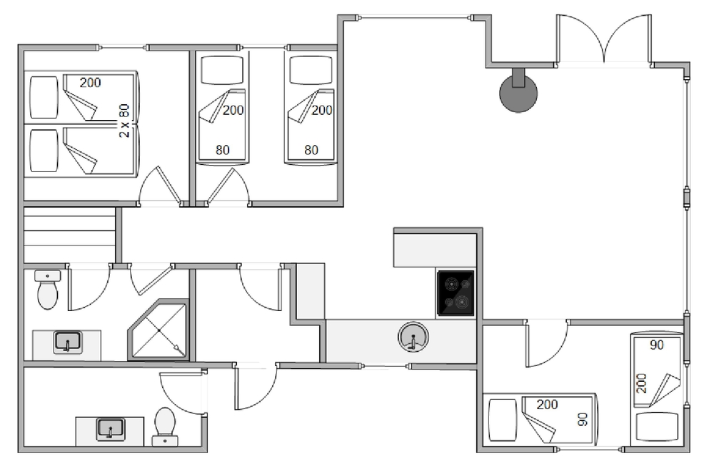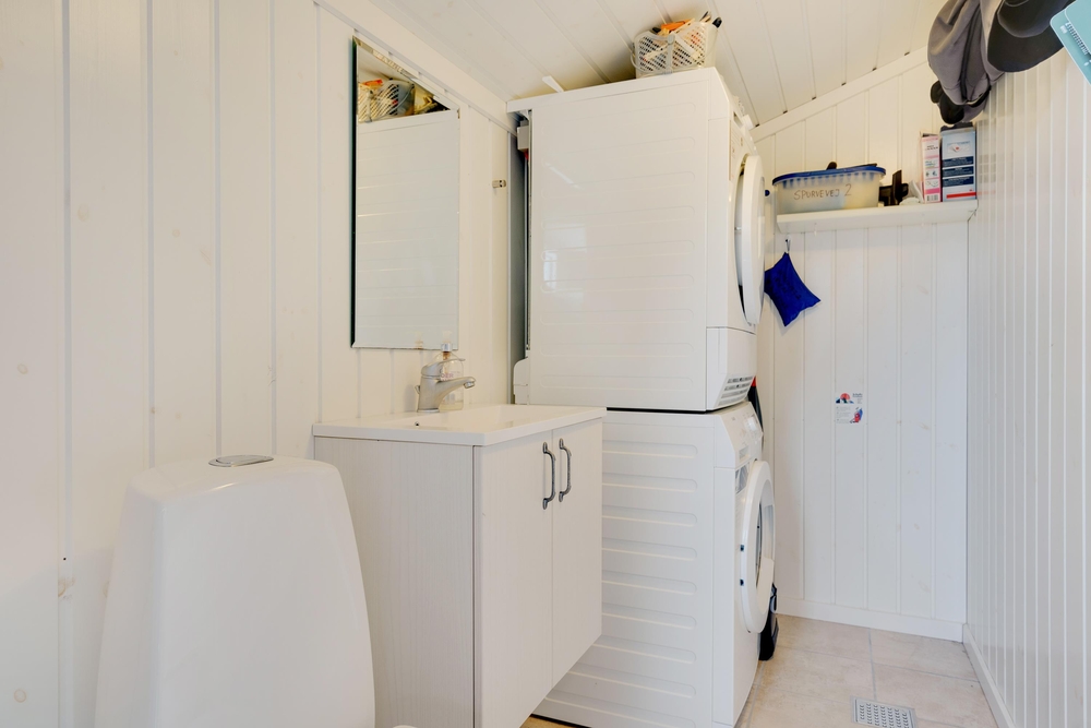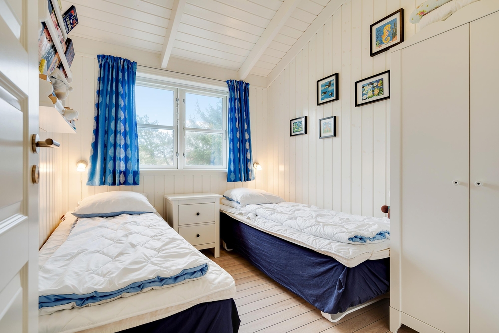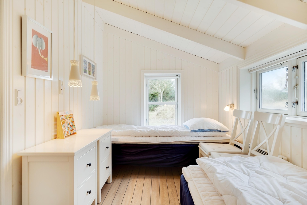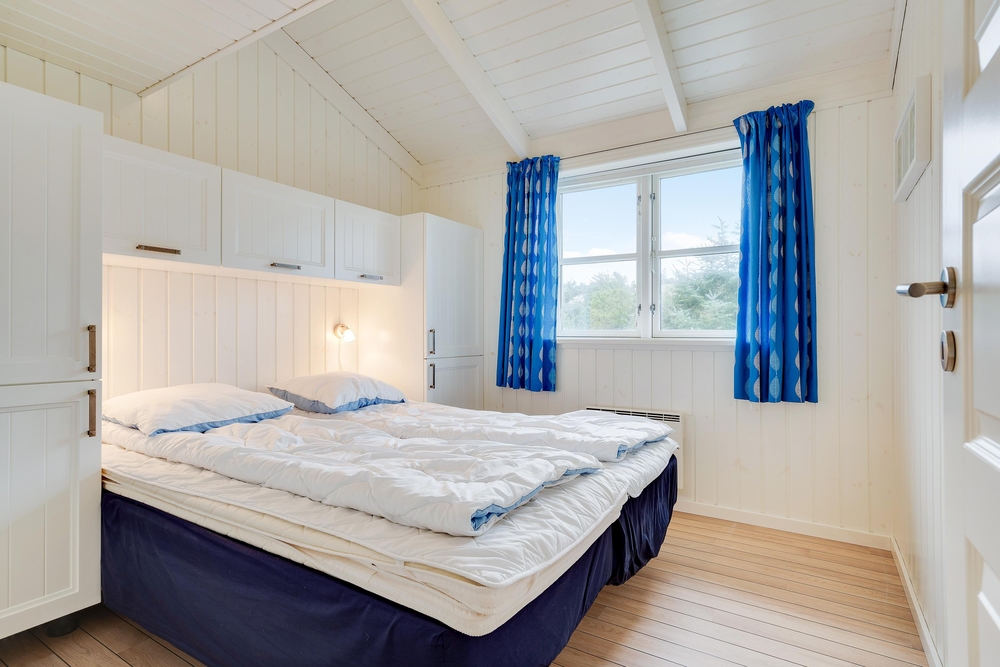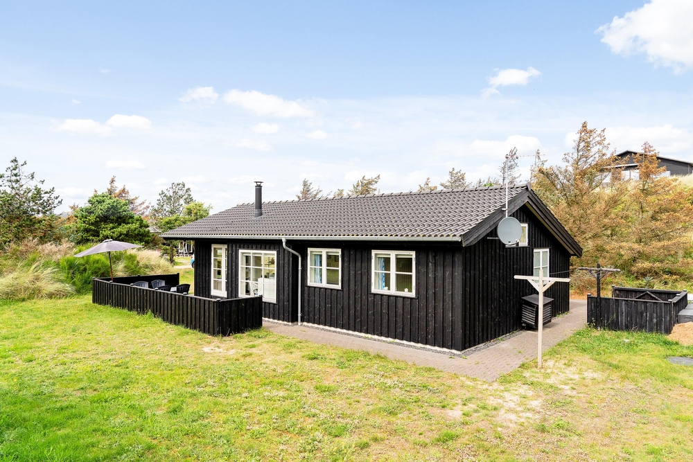 Dette 87 m2 fine hus rummer alt, der skal til for at holde en dejlig ferie. Her har I 3 gode soverum hvoraf det ene har dobbeltseng og de andre to er indrettet med enkeltsenge, et pænt badeværelse med sauna til opvarmning og hygge efter en lang dag ved Vesterhavet, og I har et gæste-wc med både vaskemaskine og tørretumbler.