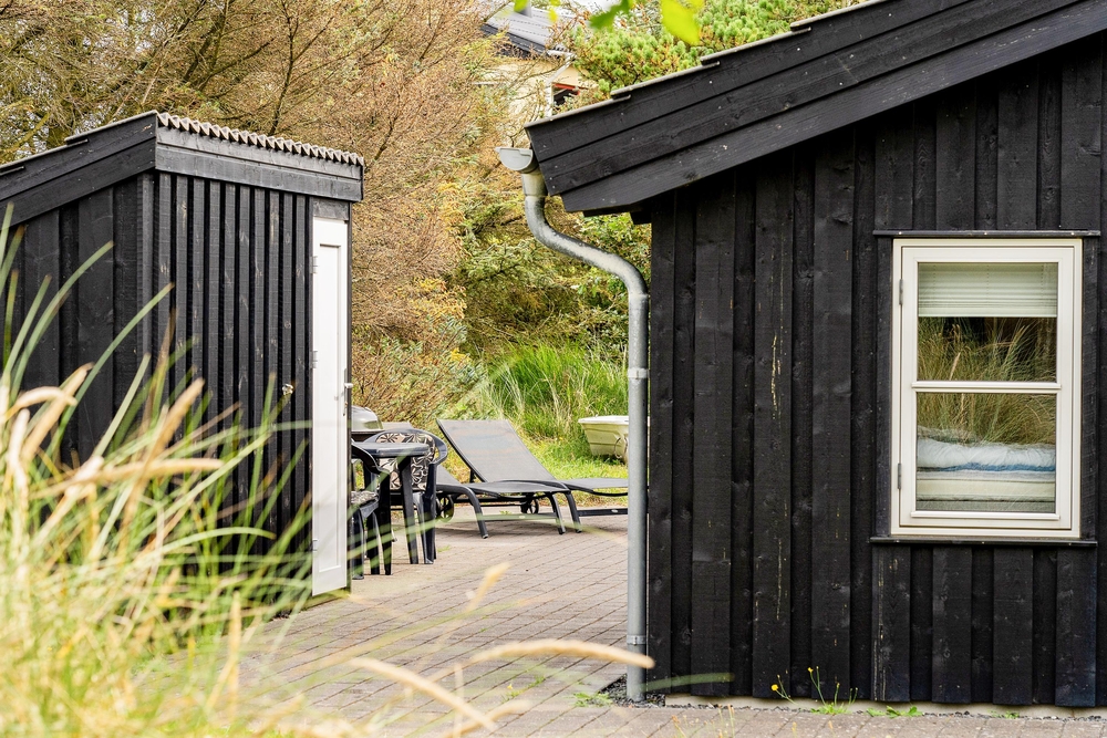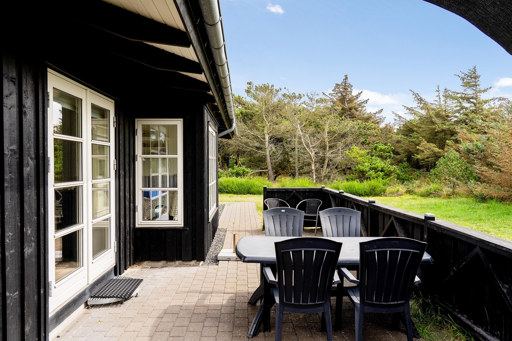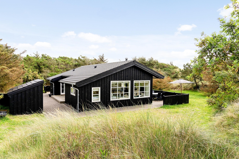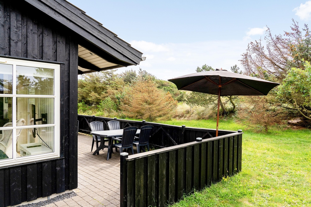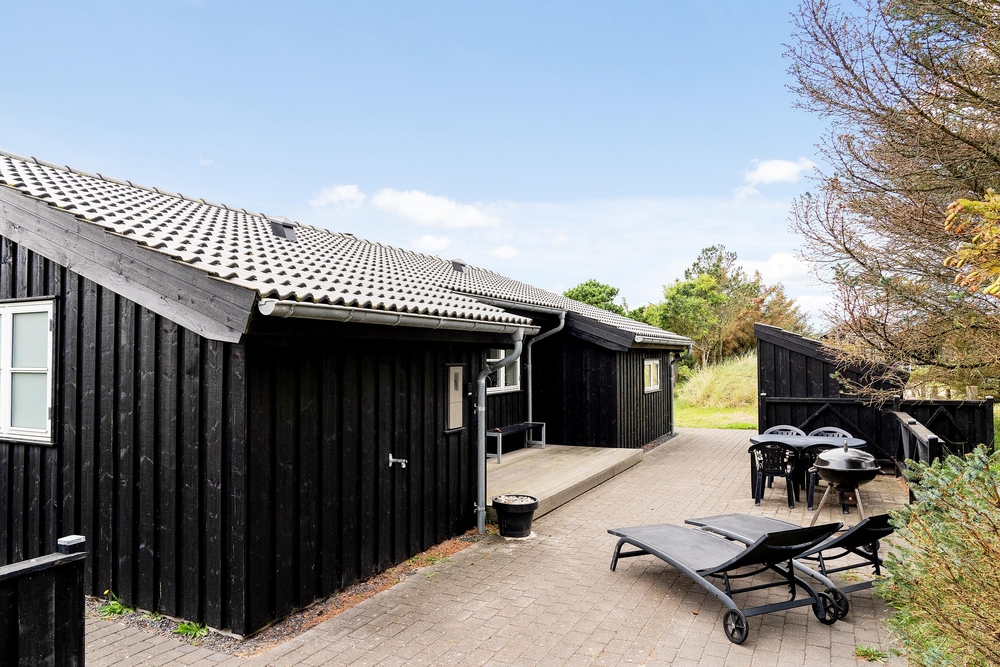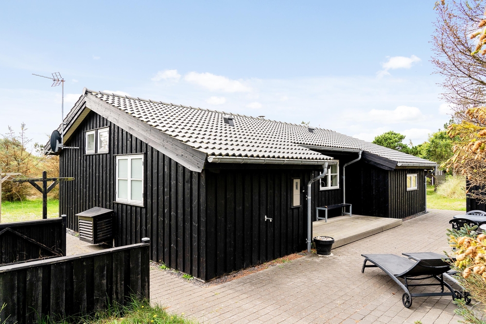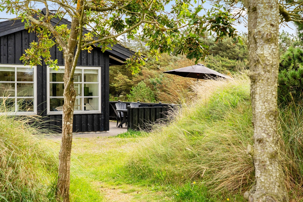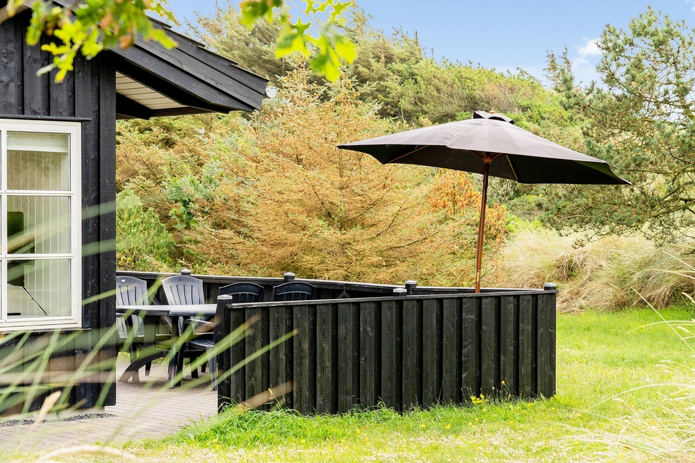 Huset ligger på en dejlig lyst naturgrund, der er omsluttet og beskyttet af klitter, lave træer og buske. Rundt om huset har I terrasser og især på sydvest-terrassen, der er afskærmet, kan I allerede i det tidlige forår sidde ude og nyde de allerførste solstråler. Åben dobbeltdøren fra stuen og luk den skønne duft af salt og lyng ind. Spurvevej 2 ligger kun 300 meter fra havet, så du kan sagtens smide håndklædet over skulderen og smutte ned over klitten til en morgendukkert før morgenmaden. Eller hvad med en frisk efterårs- eller vinterdukkert med efterfølgende opvarmning i saunaen?