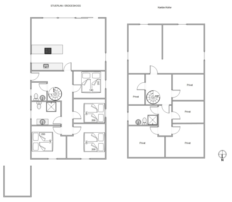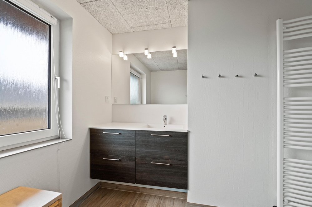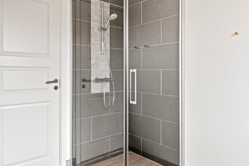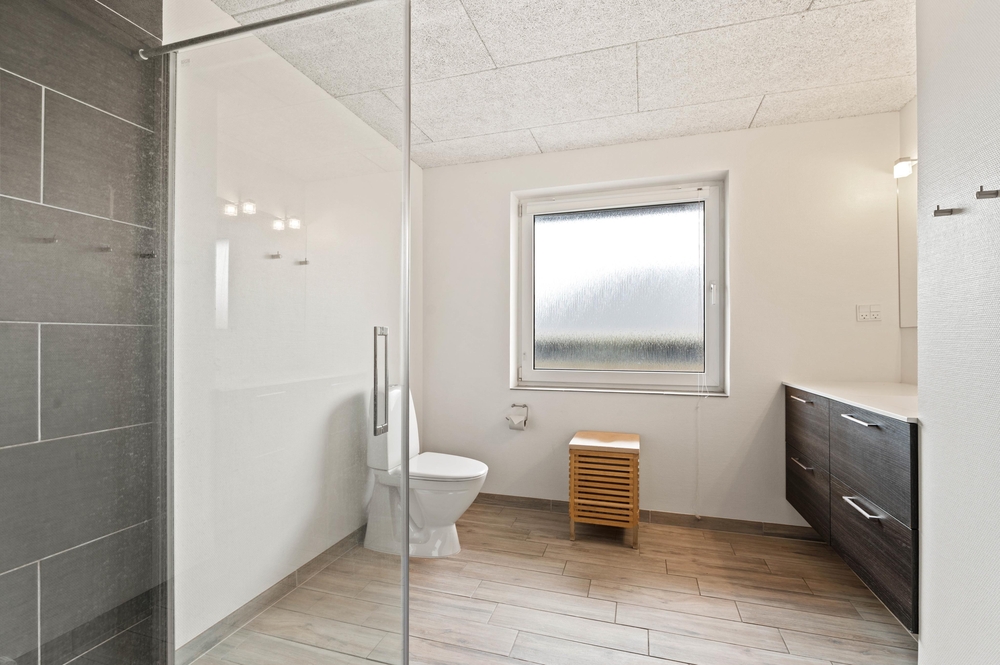 Den praktiske opdeling i 2 etager gør, at man altid kan trække sig tilbage og rekreere lidt for sig selv. I øverste etage er 4 soveværelser med dobbeltsenge, 1 gæstetoilet og 1 badeværelse med bruser. På etagen ovenover er endnu et badeværelse med bruser. Alle toiletter og badeværelser har gulvvarme.
