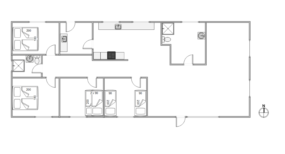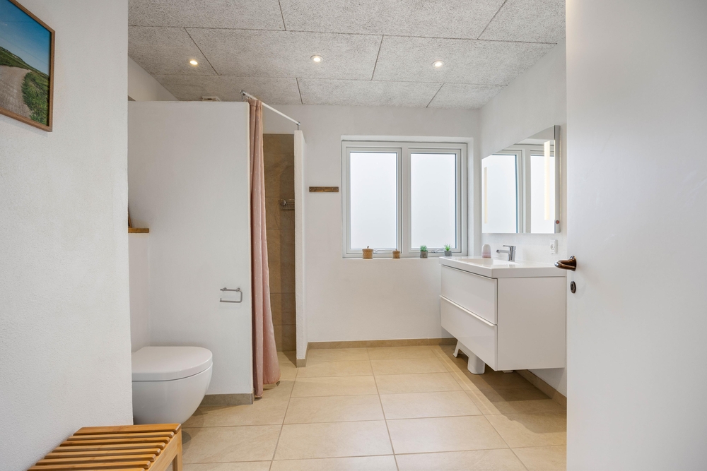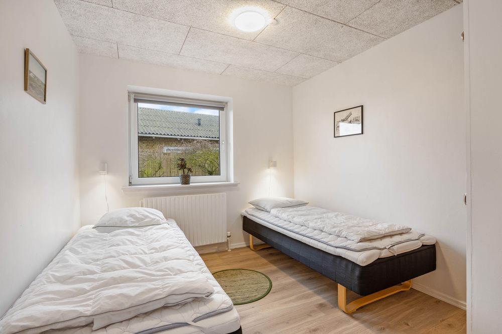 I feriehuset er der 2 gode badeværelser ? begge med gulvvarme ? så der er ingen grund til kødannelse hverken morgen eller aften. Derudover er sommerhuset indrettet med 4 soveværelser, hvor feriens gæster kan få sig en god nats søvn.