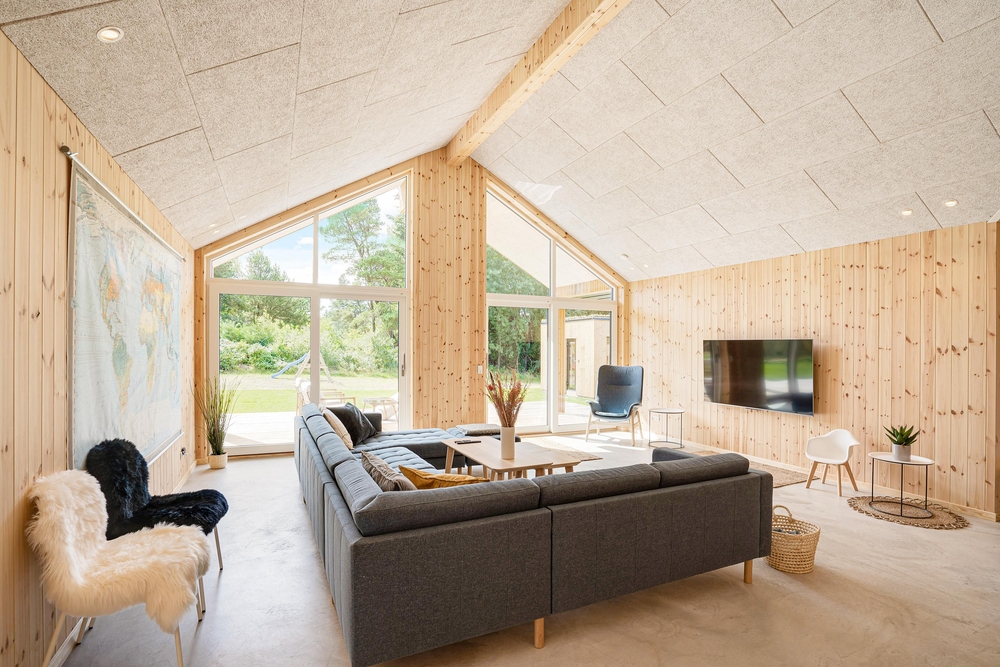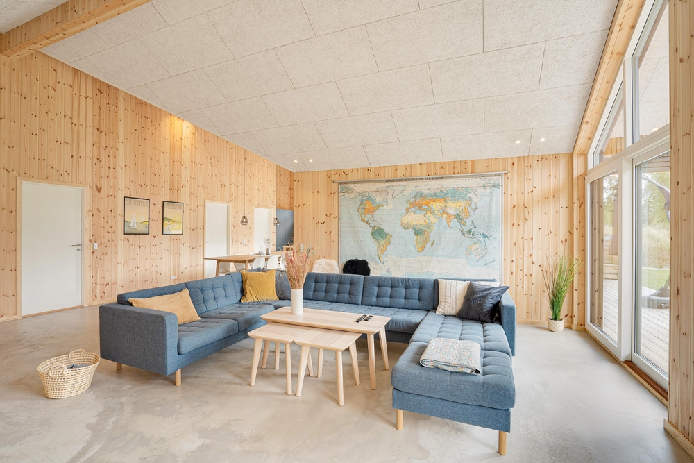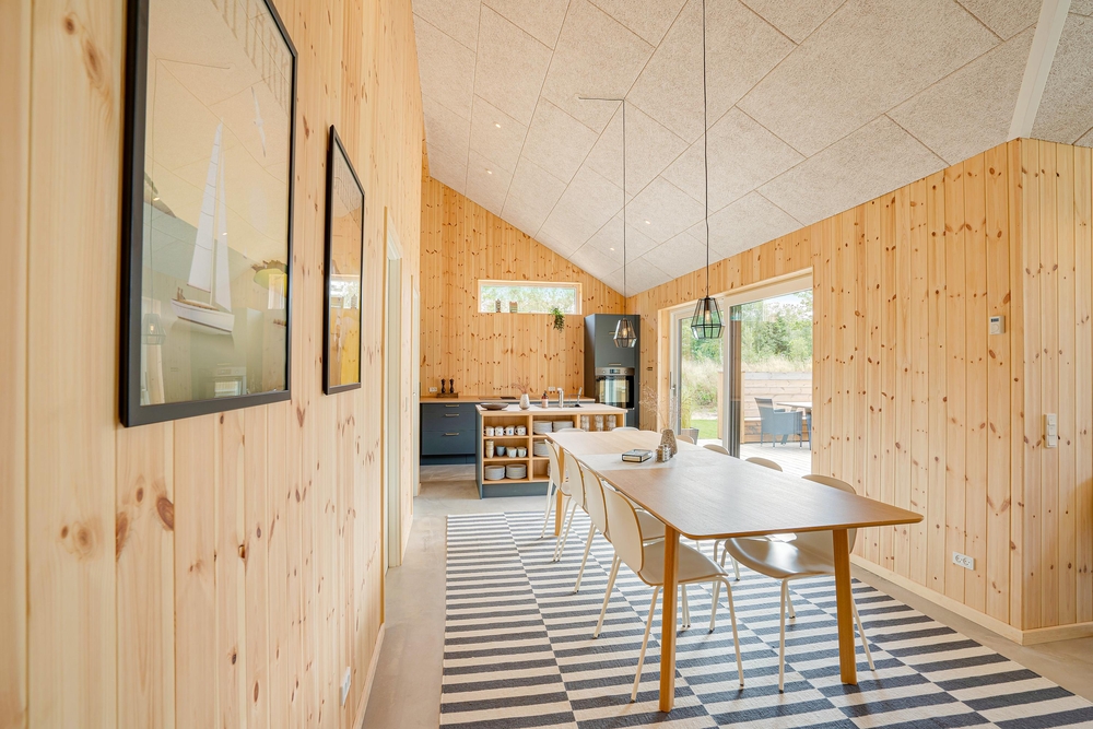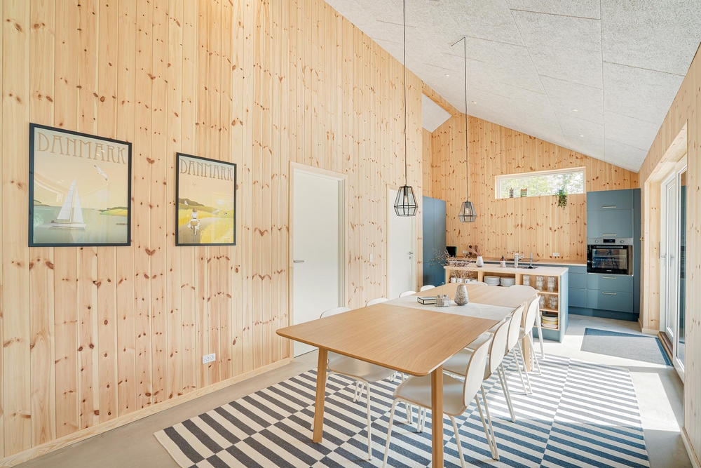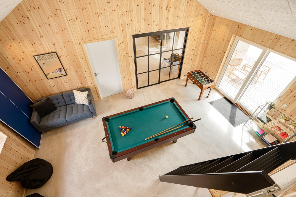 Sommerhusets hjerte er aktivitetsrummet med et aktivitetsbord, hvor I kan spille billard, airhockey eller bordtennis. I det rummelige køkkenalrum finder I køkkenet, hvor I kan tilberede feriens lækre måltider. Køkkenet går i et med stuen, hvor I kan læne jer tilbage og se en god film sammen.