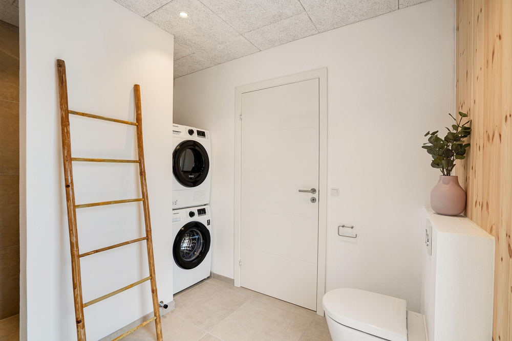 Hverdagens bekvemligheder følger også med i form af både vaskemaskine, tørretumbler og opvaskemaskine. Jeres elbil kan lades op ved hjælp af ladestanderen ? eget kabel (type 2) medbringes.