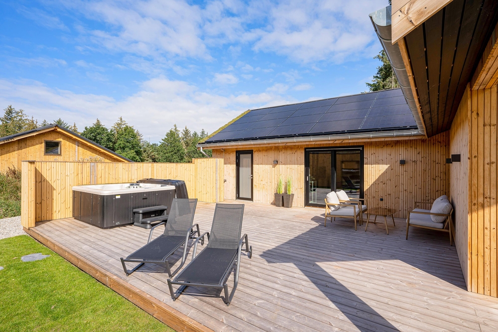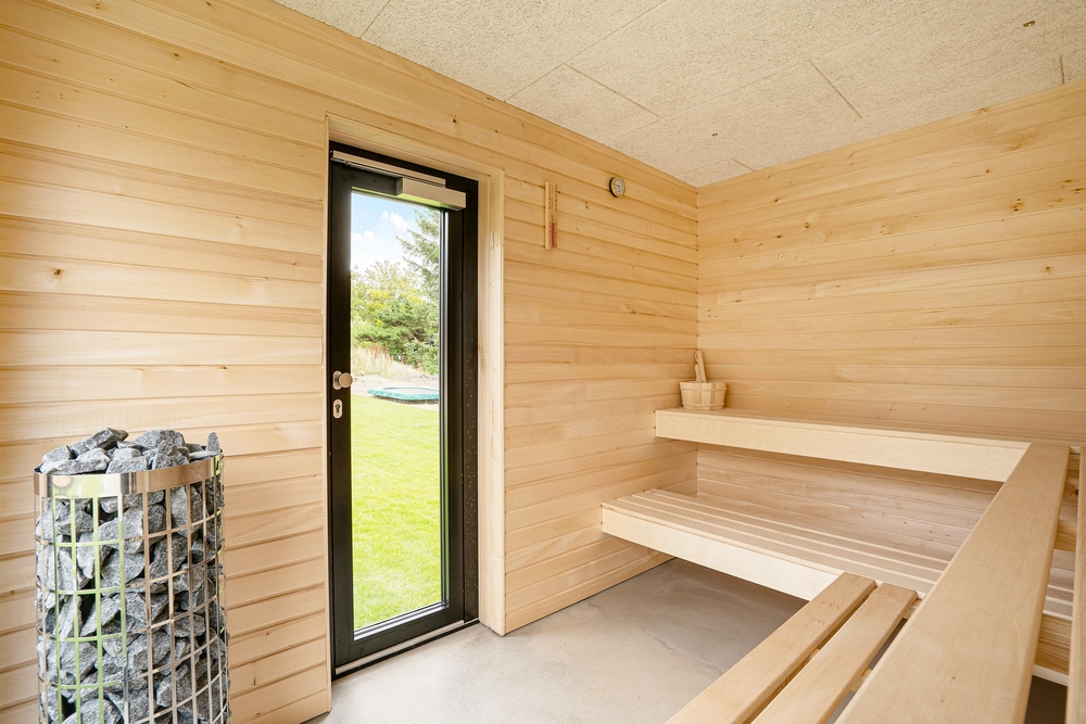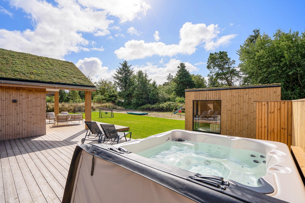 Når afslapningen skal nå det næste niveau, kan I hoppe i den store udespa med plads til hele 6 personer. Selv når mørket falder på, og det bliver lidt køligt, kan I sidde i det varme, boblende vand og nyde en kold øl. Dertil kommer den lækre udesauna, hvor I kan nyde en skøn wellness-stund med udsigt til Hennes grønne natur.