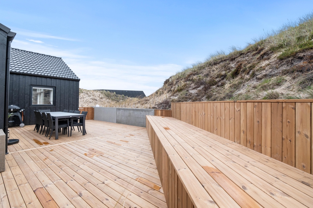 Efter en dejlig dag på Danmarks smukkeste sandstrand, kan I alle nyde aftenen på den åbne terrasse, skylle sandet af i udebruseren, som er tilgængelig fra april til november og tænde op i gasgrillen og lade bøffen ligge og svede, mens I nyder et iskoldt glas rosé.