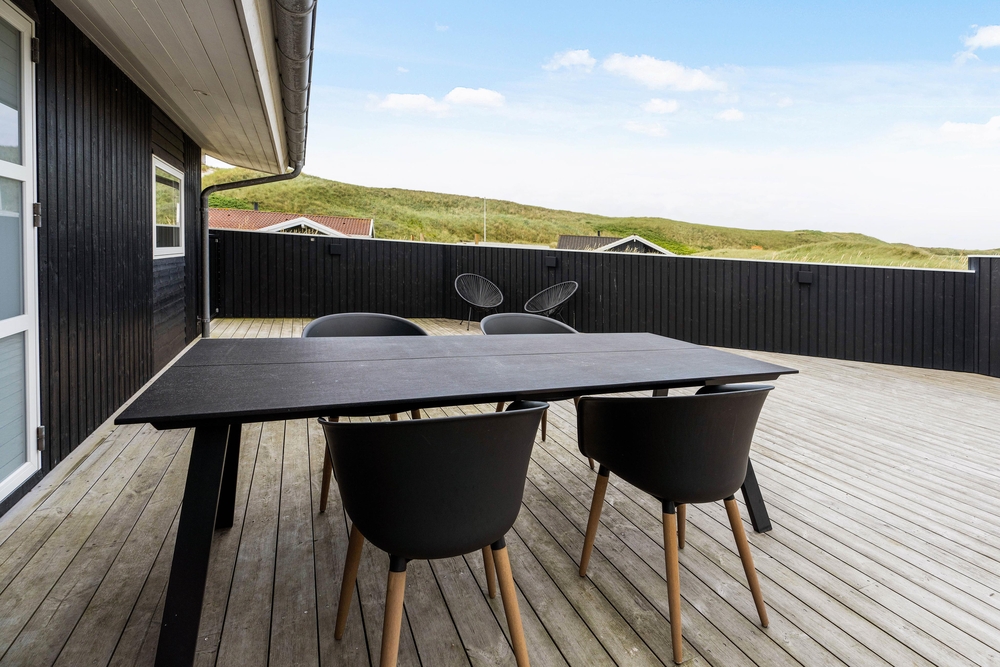 Ud over den fantastiske terrasse får I også en helt exceptionel beliggenhed. Vesterhavet ligger kun 50 meter væk, og der står intet i vejen for en strandudflugt. Der er ligeledes kun en lille gåtur til havnebyen Hvide Sande, hvor masser af fine butikker, hyggelige caféer og lækre restauranter venter på jer.