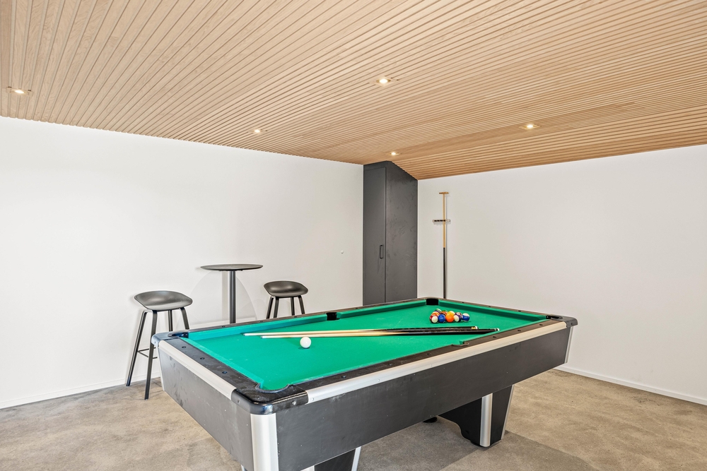 Det store lege- og afslapningsområde vil bestemt falde i god jord hos hele familien. Om I er til vandpjask med badebold i bassinet eller bobler og varme i spaen, er helt op til den enkelte. Her er i hvert fald mulighed for begge dele på enten en koldere forårsdag eller efter en aftentur på stranden kun 150 m fra huset. Ligesom poolen er billardbordet også en sikker vinder ? spil farve og find feriens vinder ? eller måske skal dysten tages på det udendørs bordtennisbord.