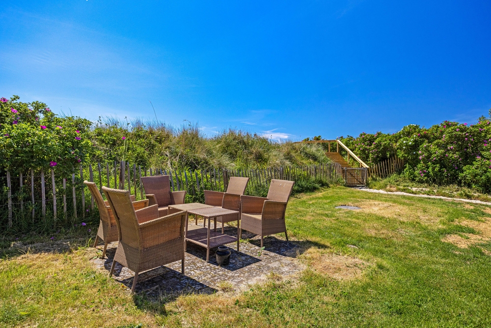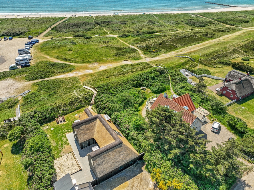 Sommerhuset har de fineste udearealer og den skønneste beliggenhed kun 150 meter fra stranden og 100 meter fra indkøbsmuligheder.