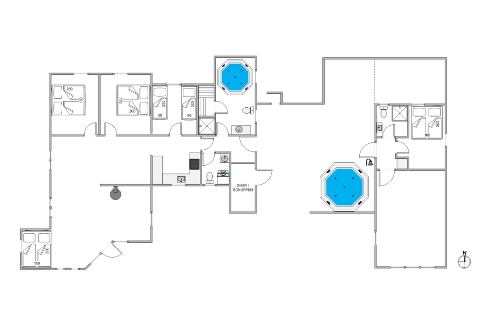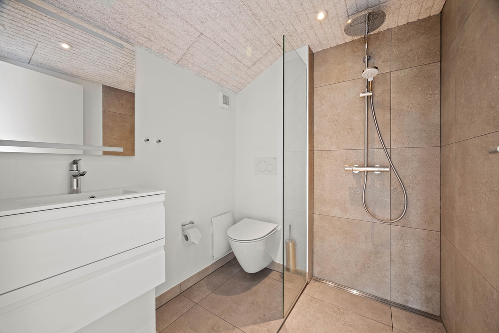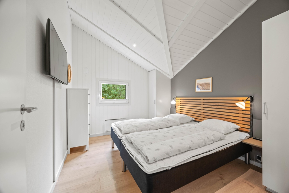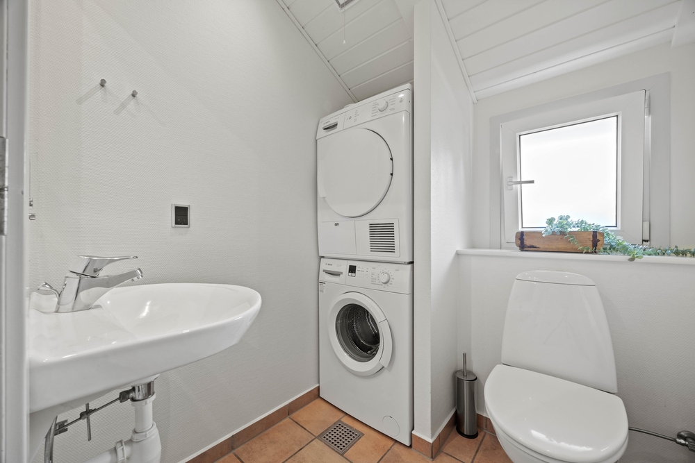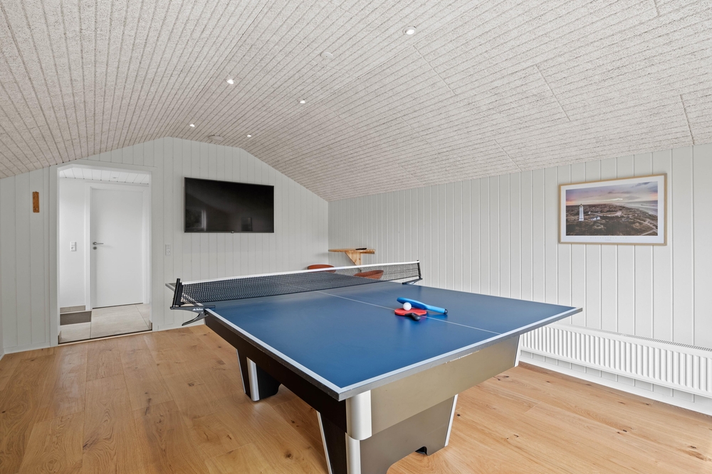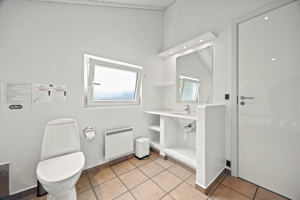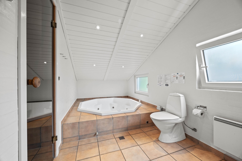 Der er 2 badeværelser med gulvvarme og et gæstetoilet til rådighed for jer, så I behøver ikke at stå i kø til tandbørstningen. I forbindelse med det ene badeværelse er også spa og sauna, så I kan arrangere jeres private wellnessaften. I de 4 soveværelser med komfortable dobbeltsenge kan I hvile rigtig godt ud i den friske vesterhavsluft. Det ene ligger i et anneks med aktivitetsrum og eget toilet og bad. Der er en energibesparende varmepumpe og ladestik til el-bil til rådighed for jer på ferien.