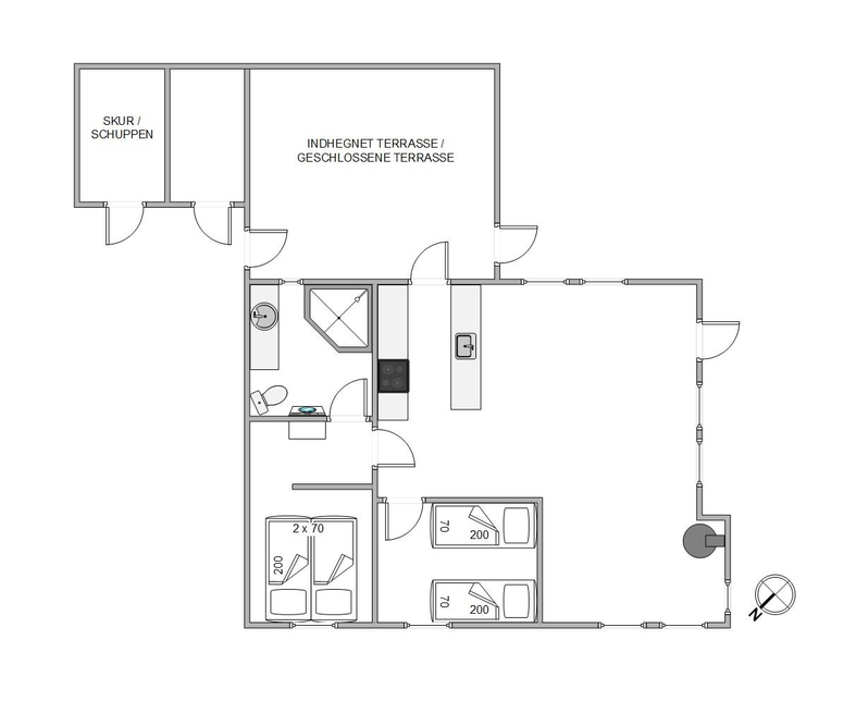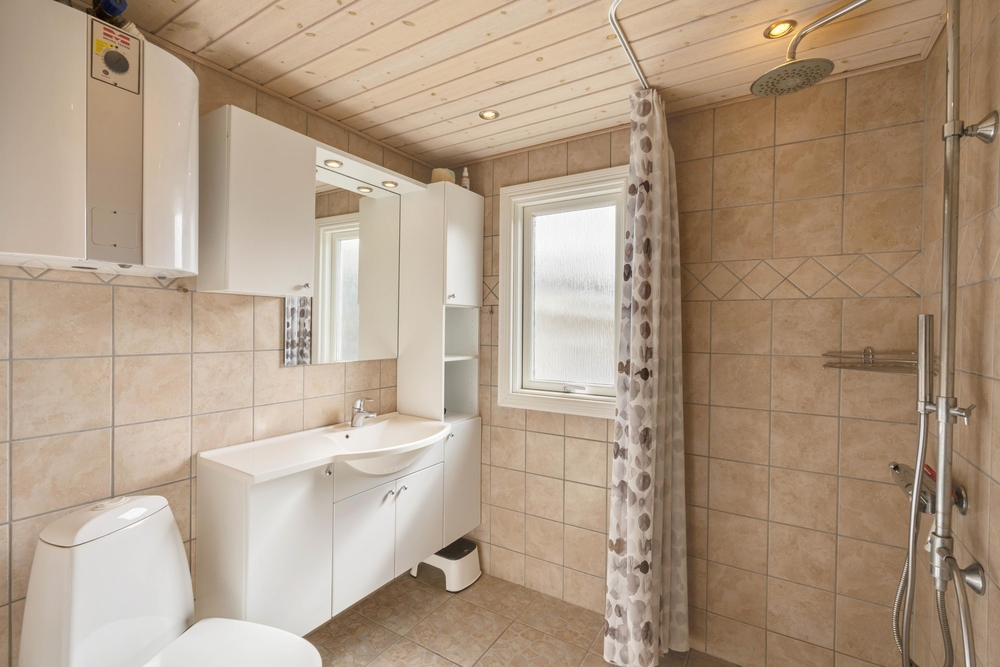 I sommerhuset finder I 2 gode soveværelser, der er indrettet med henholdsvis 1 dobbeltseng og 2 enkeltsenge. Desuden rummer sommerhuset 1 badeværelse, som er udstyret med gulvvarme, så ingen af jer skal fryse fødderne fra morgenstunden.