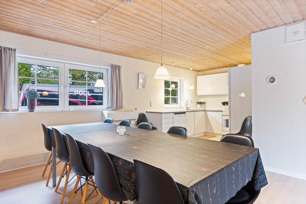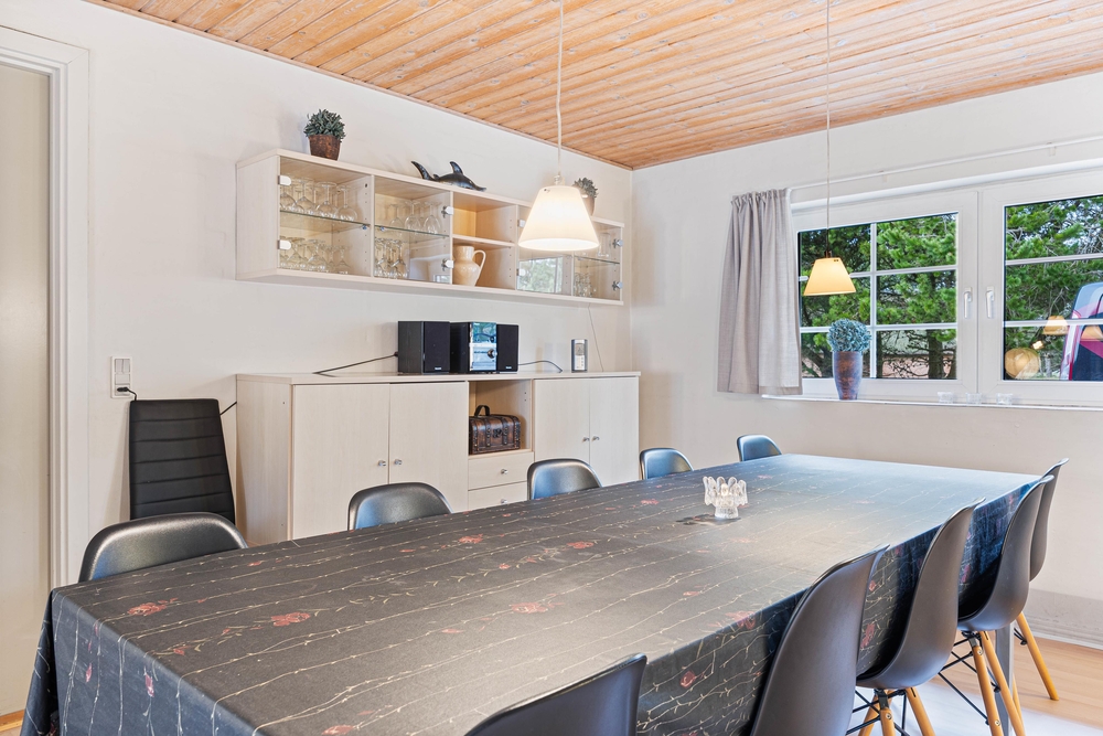 På Svollingvej 10, ligger det 212 m² store feriehus som er velindrettet med køkken i åben forbindelse til spisepladsen og med sammenhæng til stuen, hvor der er brændeovn og samtidig også direkte udgang til den store dejlige terrasse. Feriehuset er pænt og komfortabelt møbleret og har rengøringsvenlige trægulve i alle opholdsrum.