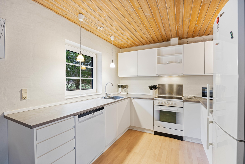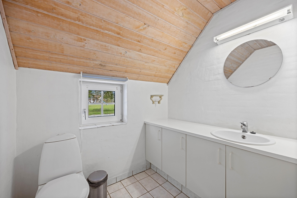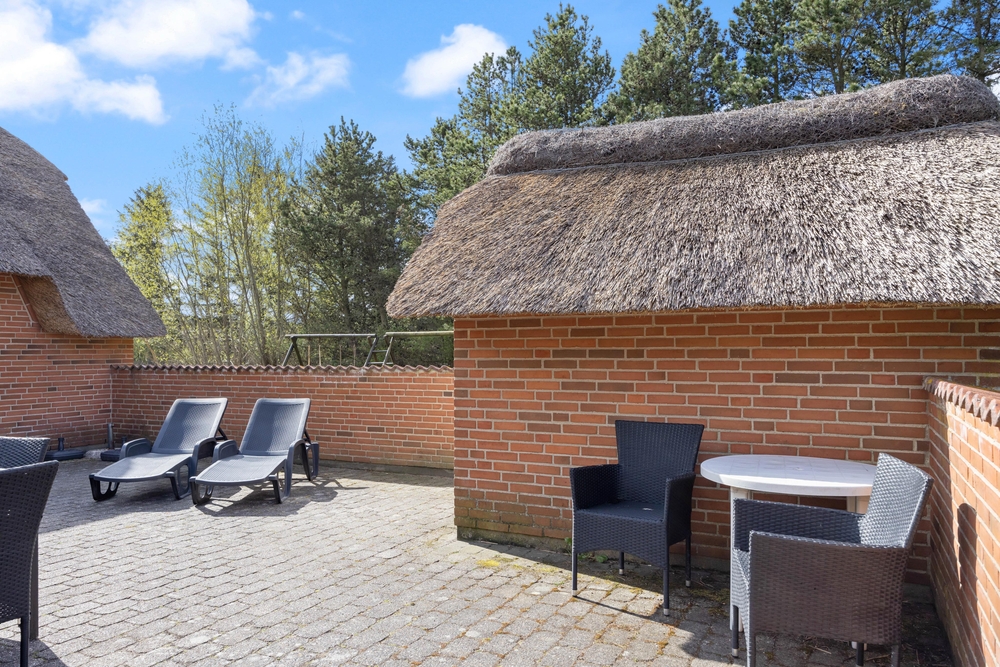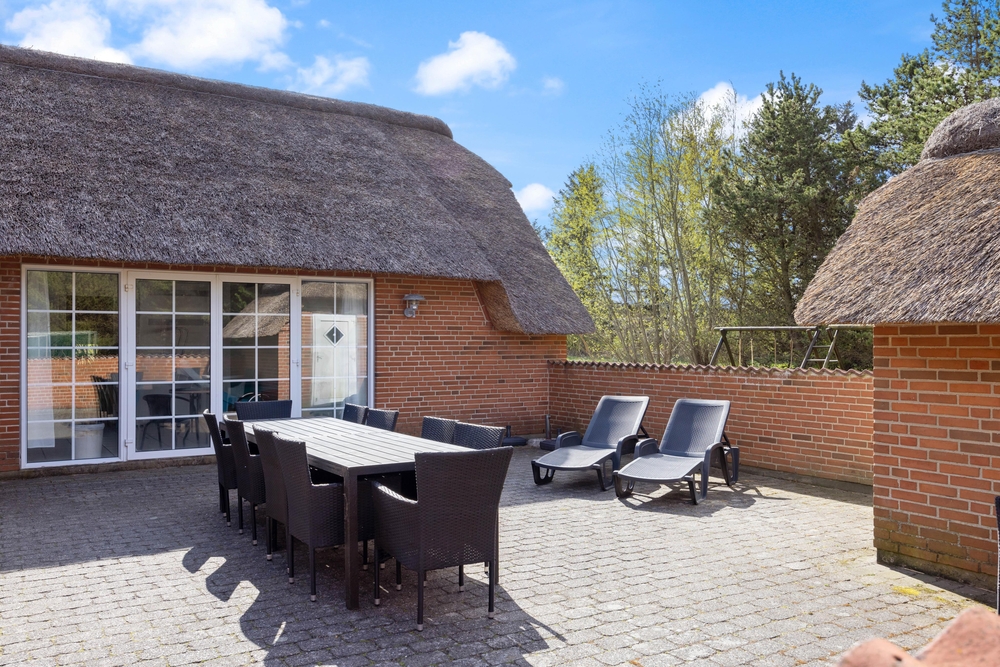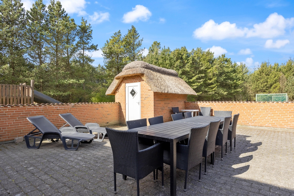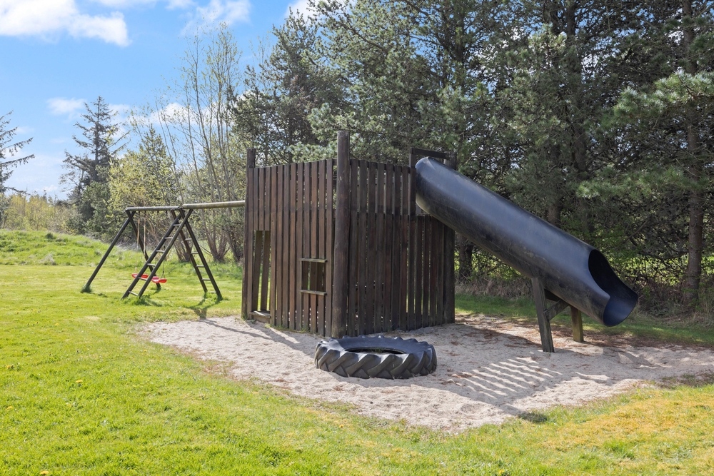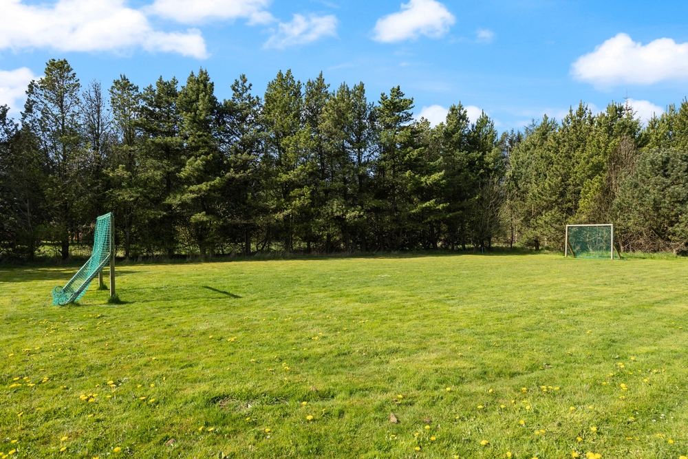 Til huset er der er super lækker terrasse med afskærmning, som giver god mulighed for solbadning og hygge omkring grillen om aftenen. Her kan I også nyde en drinks i solen, imens i dømmer børnenes fodboldkamp, eller ser de små gynge og klatre i legetårnet. Der er også en nedgravet trampolin, så gymnasten kan folde sig ud og øve sine spring. Den store grund giver i hvert fald rig mulighed, for at aktiverer både store og små ved sommerhuset.