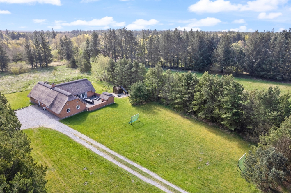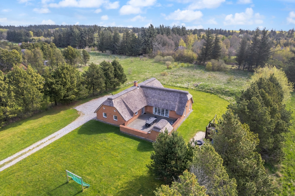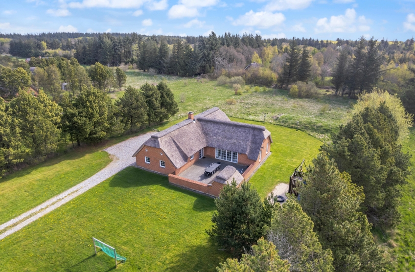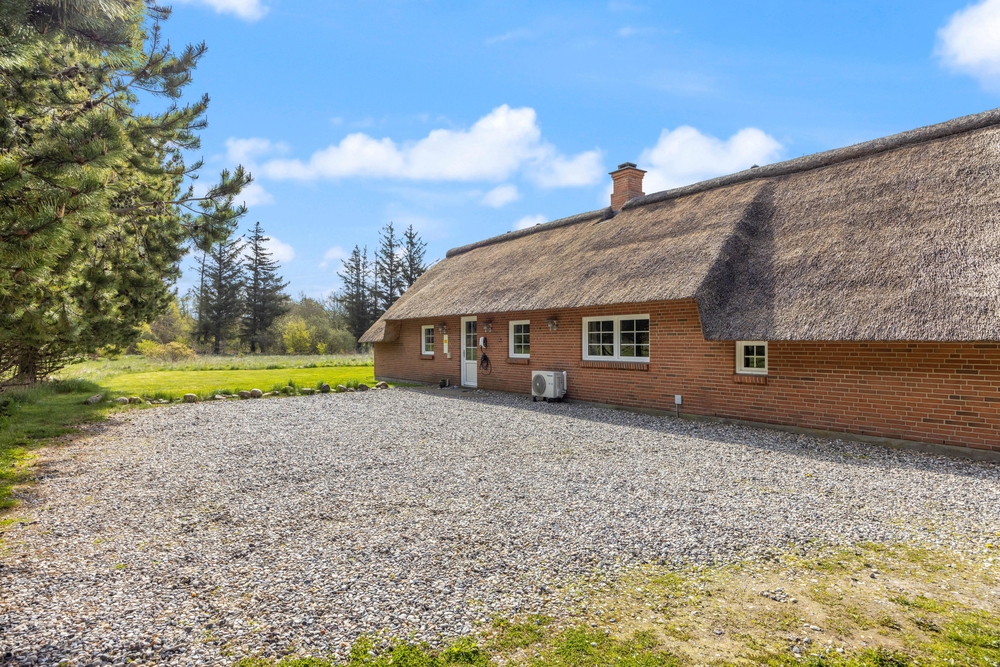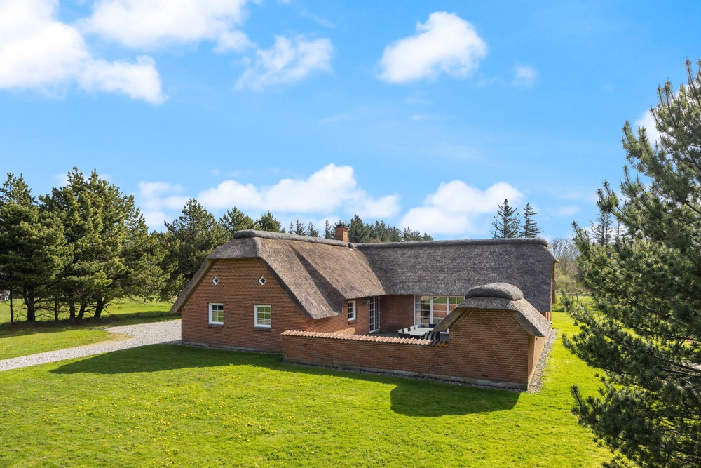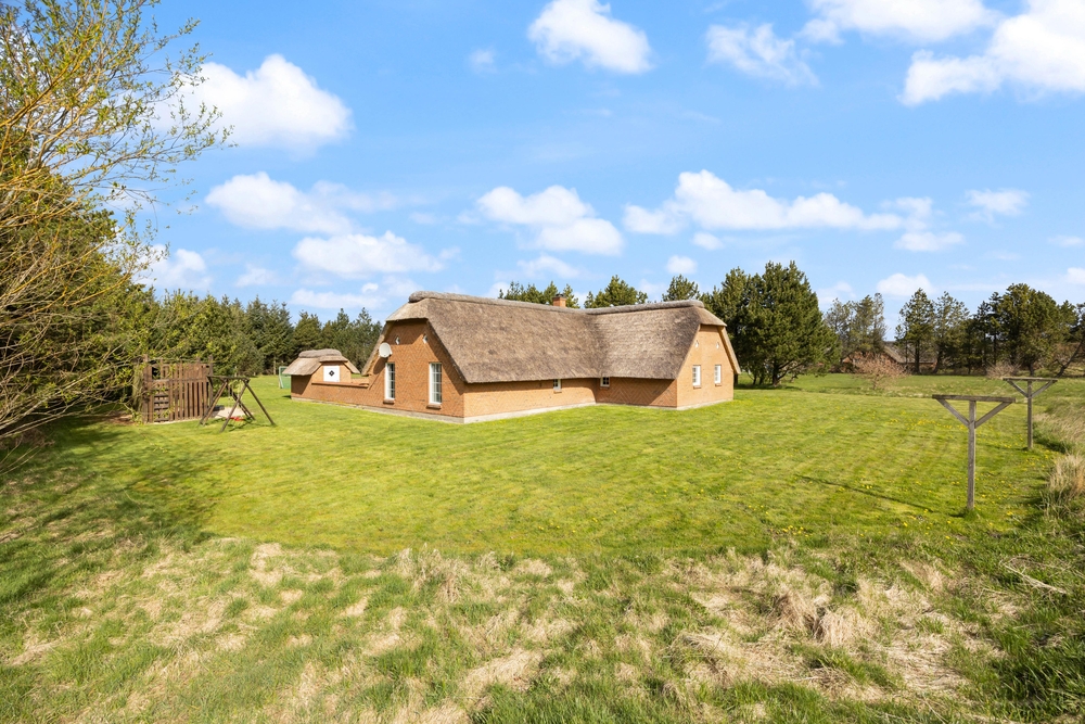Indbydende sommerhus med swimmingpool, spabad og sauna beliggende på en 5000 m² stor grund i det naturskønne område Vester Husby med ca. 1800 meter til Vesterhavet.