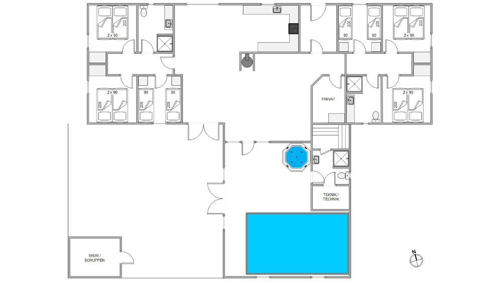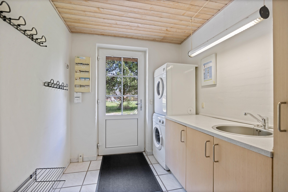 Derudover er der både vaskemaskine og tørretumbler til rådighed, som giver god mulighed for både at vaske og tørre de mange håndklæder halvvejs, hvis der skulle blive behov for det. Der er installeret energibesparende luft/luft varmepumpe til rumopvarmning, som kan understøtte et lavere forbrug end i mange andre poolhuse.