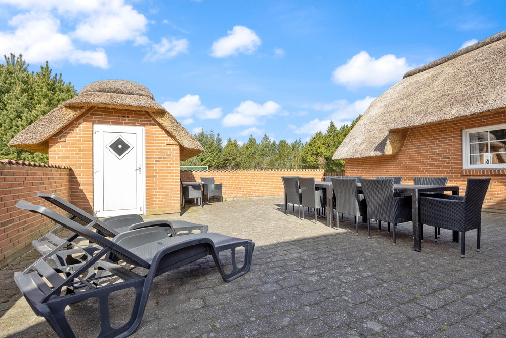 Blot 1.800 meter fra sommerhuset finder I det imponerende, brusende Vesterhav ? en dramatisk kontrast til sommerhusets rolige og indbydende pool. Her venter lange gåture i det bløde, hvide sand eller en forfriskende dukkert i havets bølger ? perfekt til både afslapning og oplevelser i naturen.