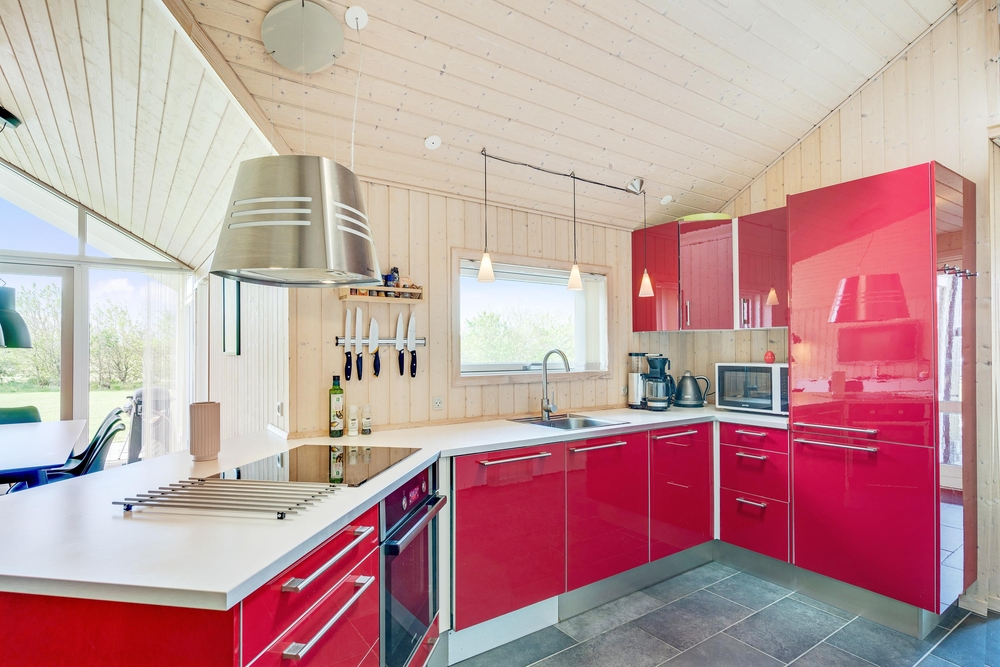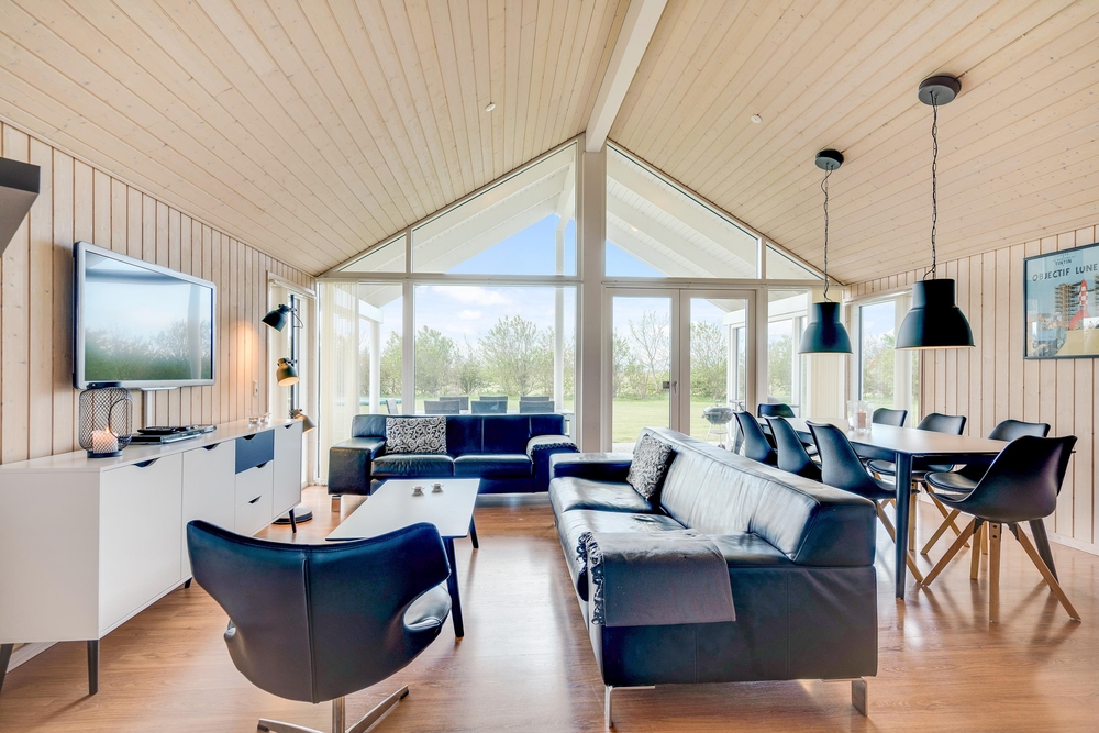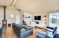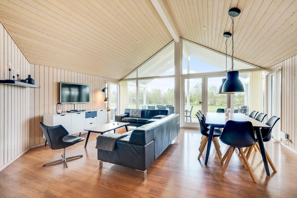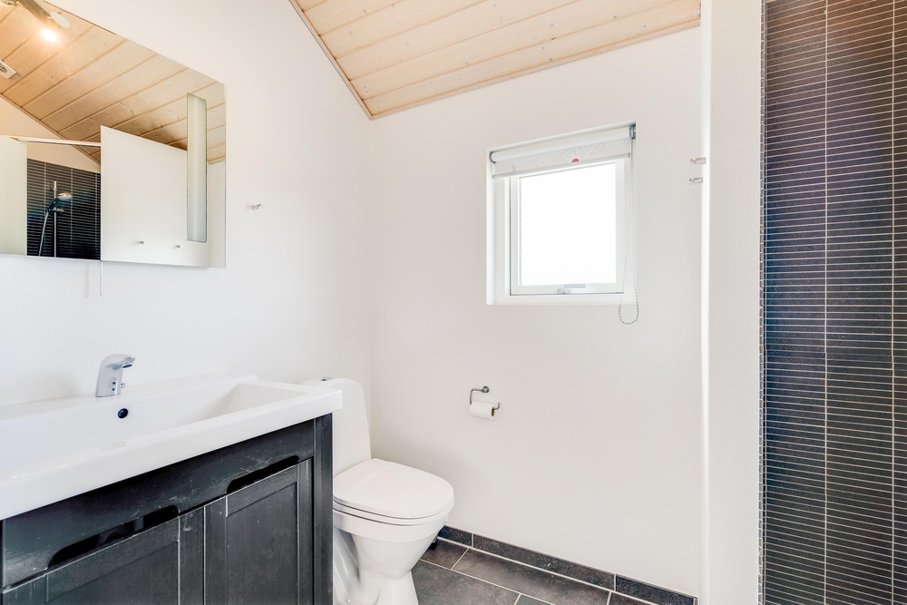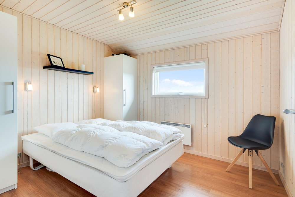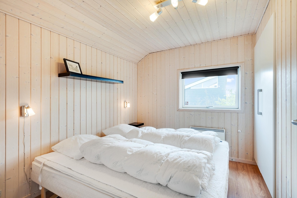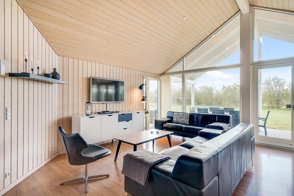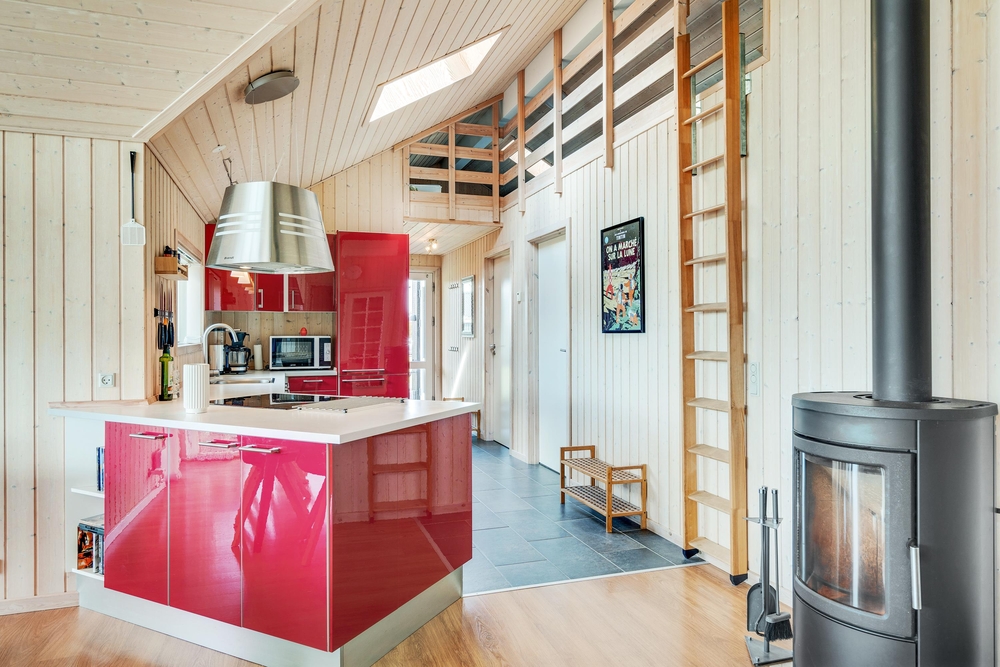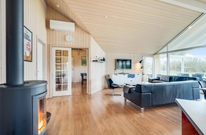 Når I træder indenfor i sommerhuset, vil I straks bemærke den lyse indretning og de store vinduer, der lukker masser af naturligt lys ind. Det åbne køkkenalrum gør det nemt at holde samtalen kørende mellem køkkenet og de bløde møbler i stuen. Her kan I også lune jer ved den hyggelige brændeovn, der skaber den helt rigtige sommerhusatmosfære.