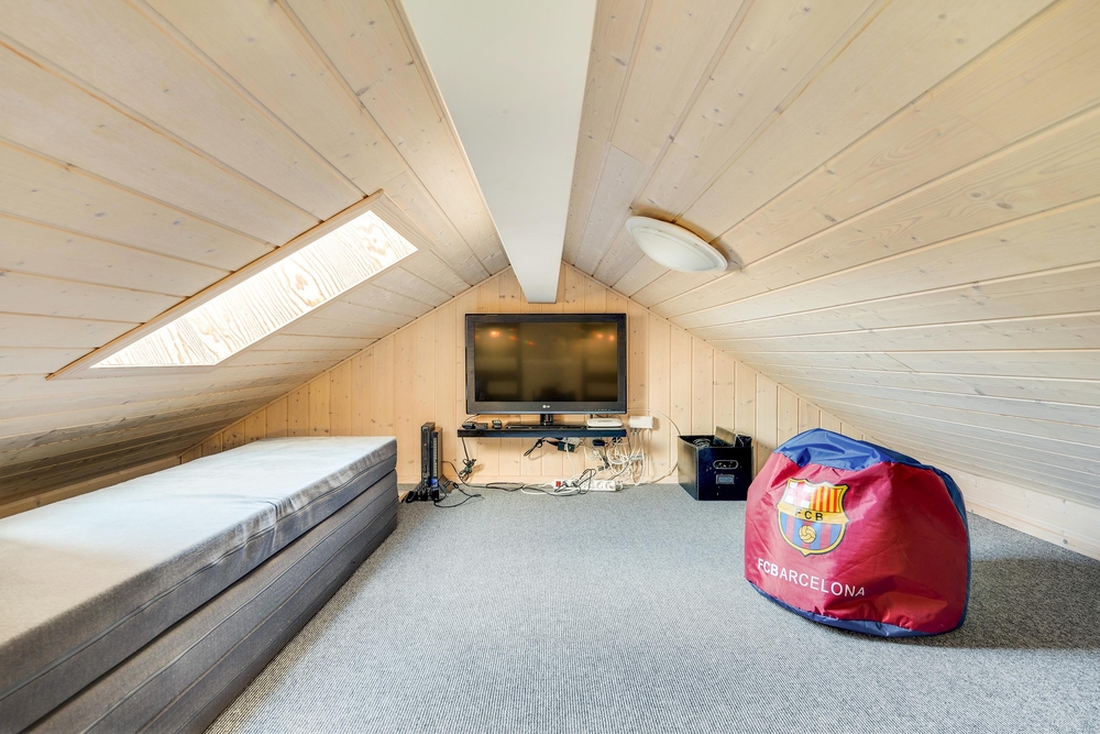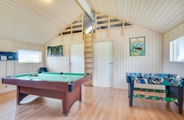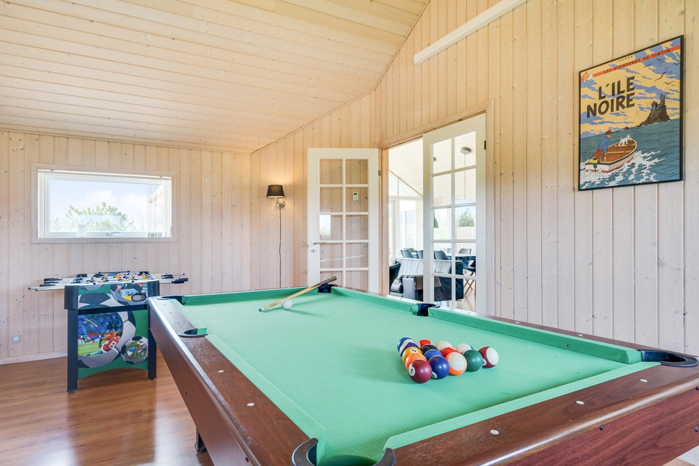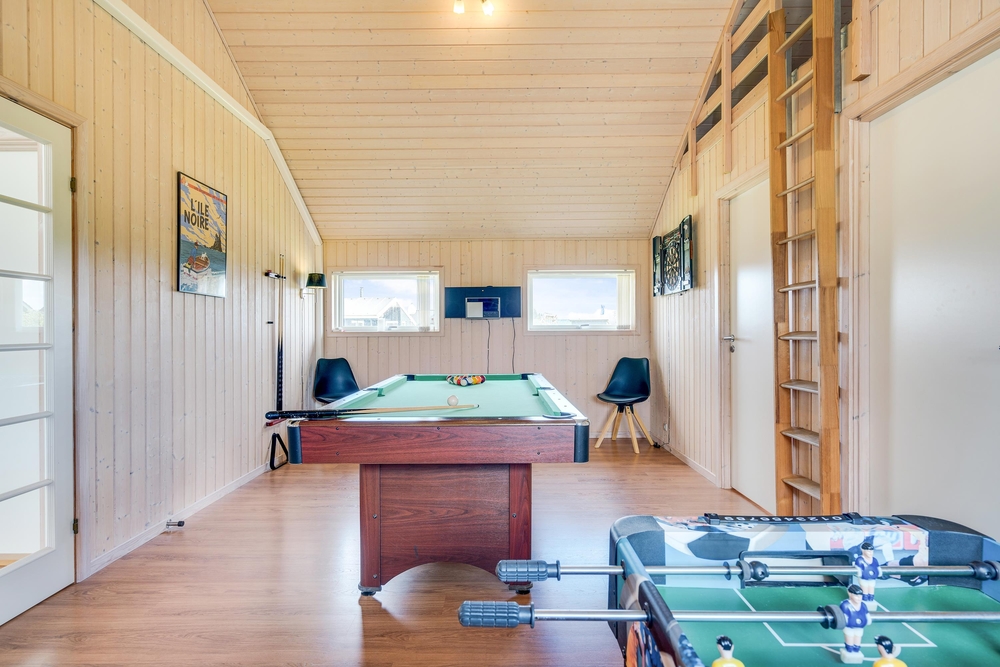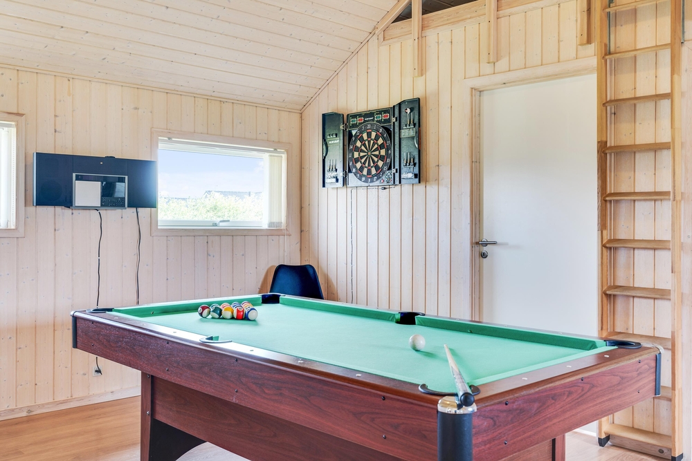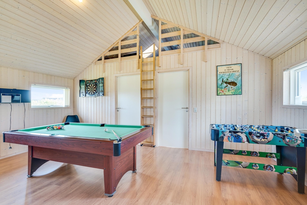 Aktivitetsrummet, som I kan træde ind i fra stuen, byder på billard, dart og bordfodbold ? en oplagt mulighed for en mini-turnering. Fra aktivitetsrummet har I adgang til en hems, hvor der er både tv og PlayStation, og hvor børnene kan have deres eget fristed til leg og underholdning.
