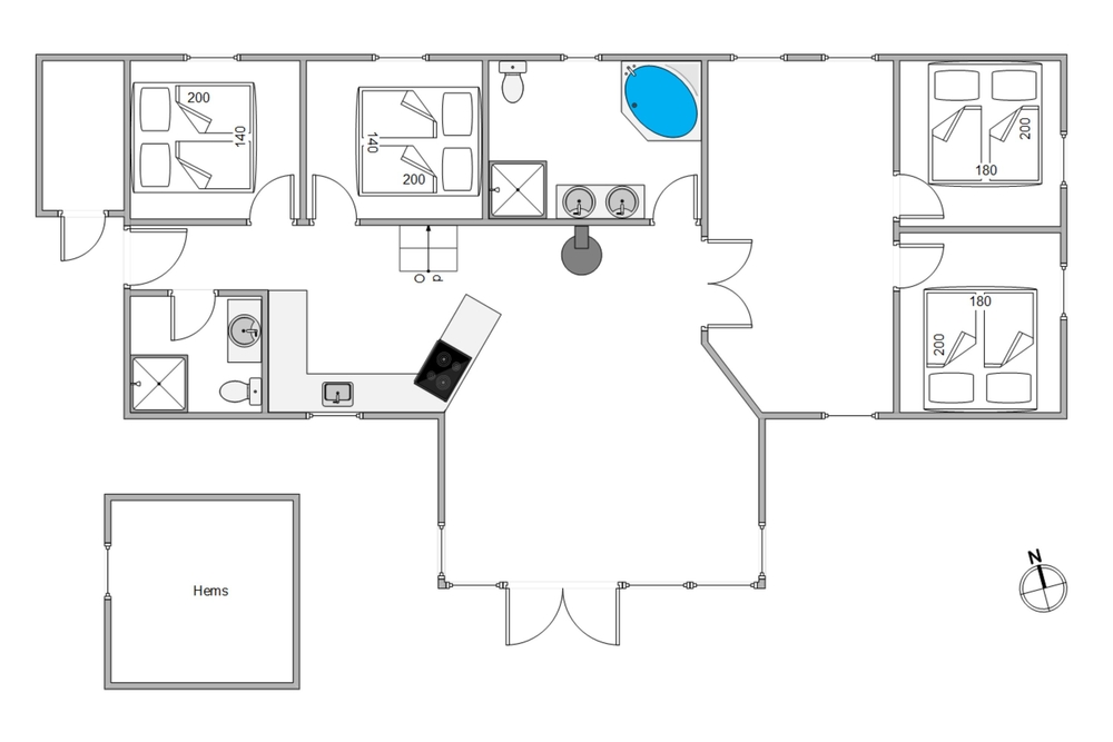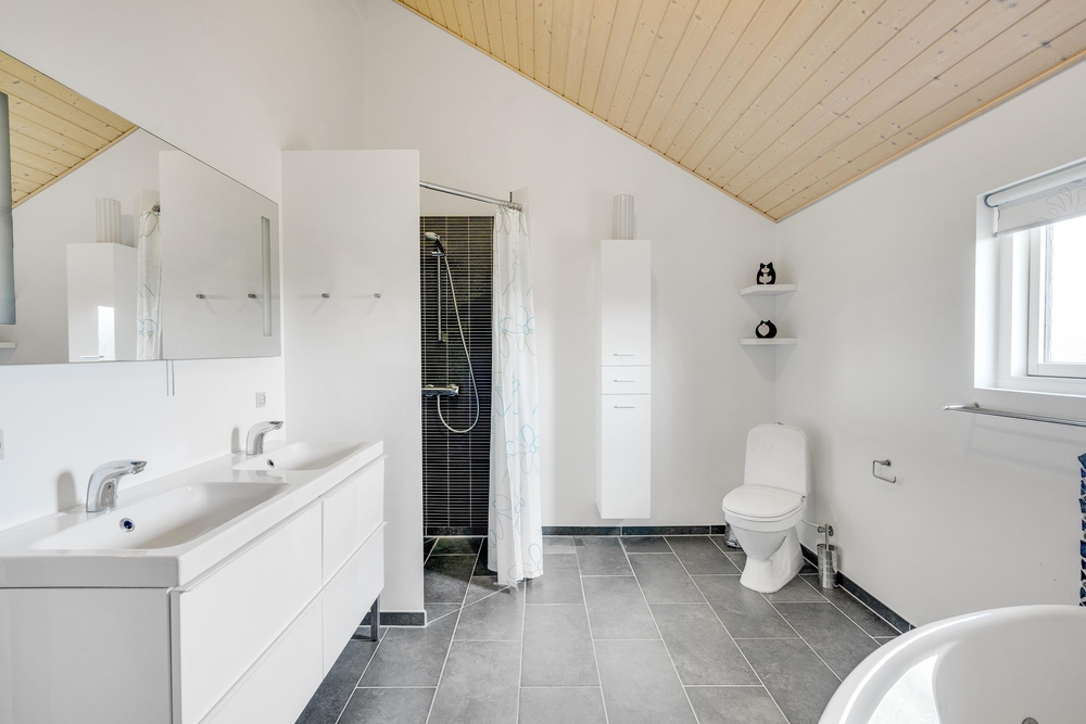 De fire soveværelser er alle udstyret med dobbeltsenge, og de to badeværelser er forsynet med gulvvarme, hvoraf det ene også har en herlig tømmespa ? perfekt til afslapning efter en dag fyldt med lokale oplevelser.
