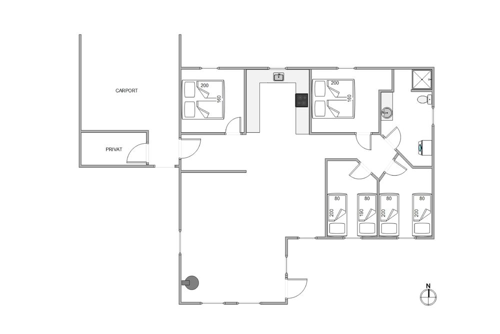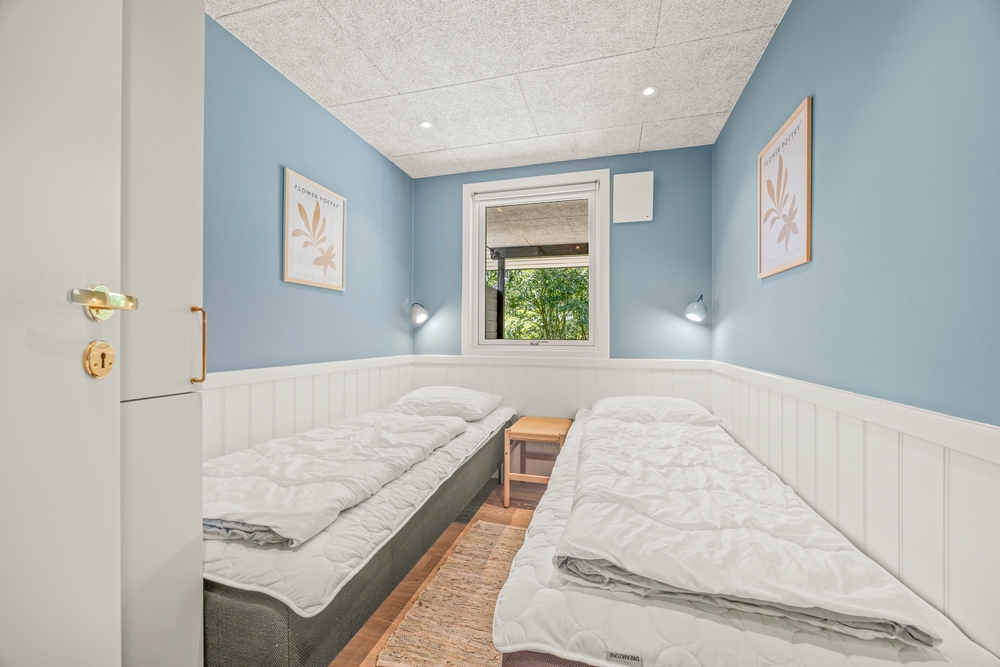 Sommerhuset tilbyder rigelig plads med sine fire soverum, der kan rumme op til seks personer. To af værelserne er udstyret med dobbeltsenge, mens de to andre hver har to enkeltsenge. Sommerhuset er også udstyret med ét badeværelse, hvor der er gulvvarme, som sikrer varme fødder på kølige morgener.