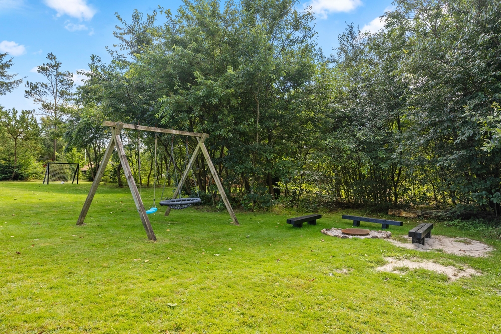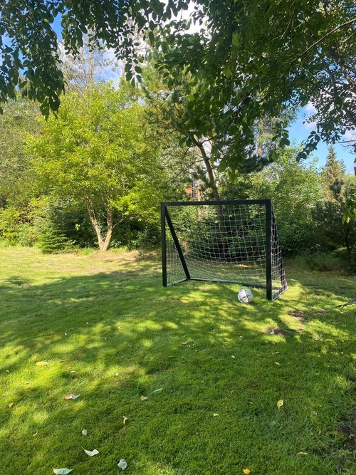 Der er desuden et bålsted, som indbyder til hyggelige aftener med snobrød og skumfiduser. For fodboldentusiaster er der fodboldmål i haven, og der er også forskellige havespil til rådighed, så I kan nyde sjove aktiviteter sammen.