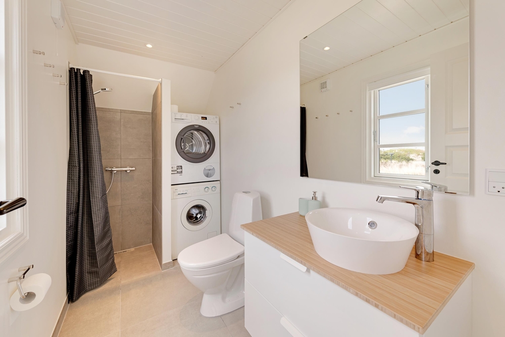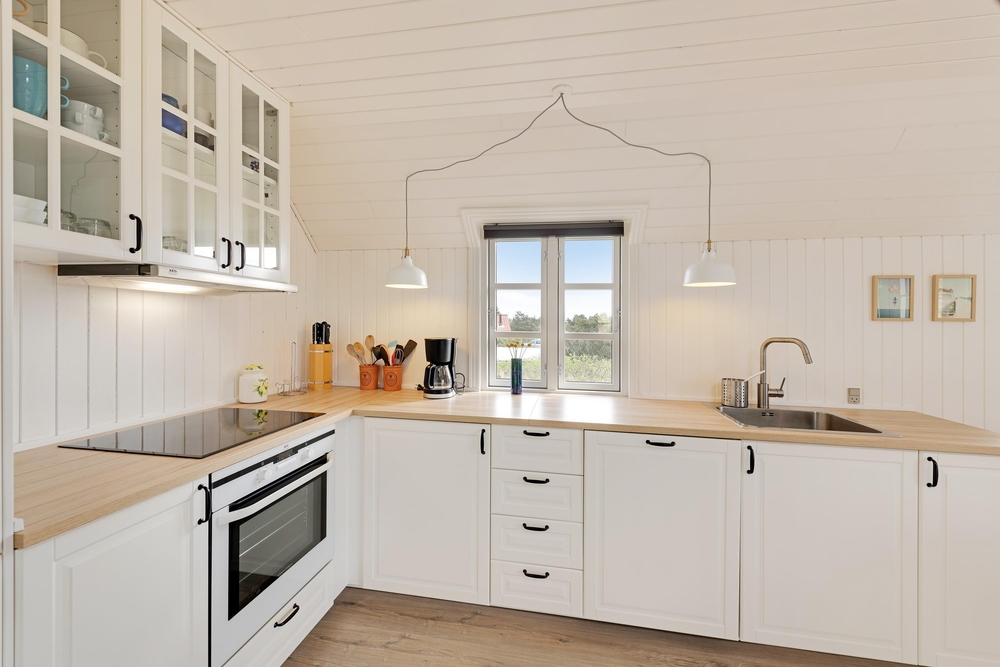 Dette hus er gennemført restaureret og indeholder netop det, der skal til for at kunne holde en pragtfuld ferie. Huset er nyrenoveret og moderne med blik for hygge og bekvemmelighed. I det moderne åbne køkken er der naturligvis opvaskemaskine, ligesom I i det lyse badeværelse finder både vaskemaskine og tørretumbler. Lige det rigtige til børnefamilien, ? som hurtigt kan få vasket og tørret tøj eller håndklæder efter en dejlig tur til stranden, med masser af sand og vandpjaskeri.