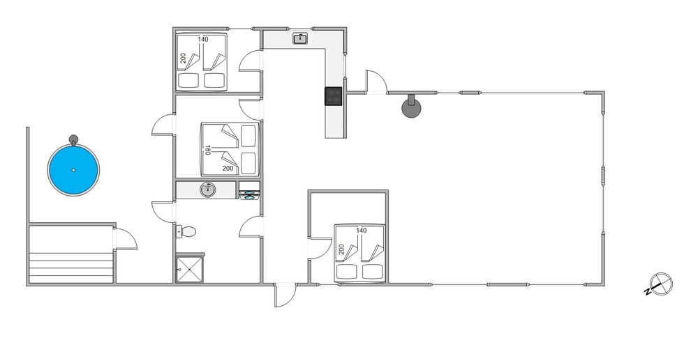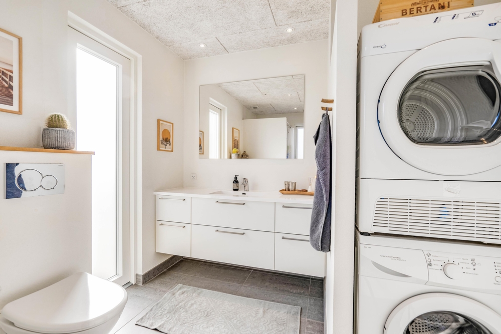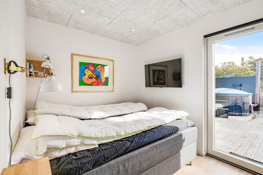 Sommerhusets badeværelse er selvfølgelig med gulvvarme, så I kan undgå kolde fødder. De 6 sovepladser er fordelt på 3 værelser, hvor alle er med dobbeltsenge, så I kan få en god søvn på jeres ferie.