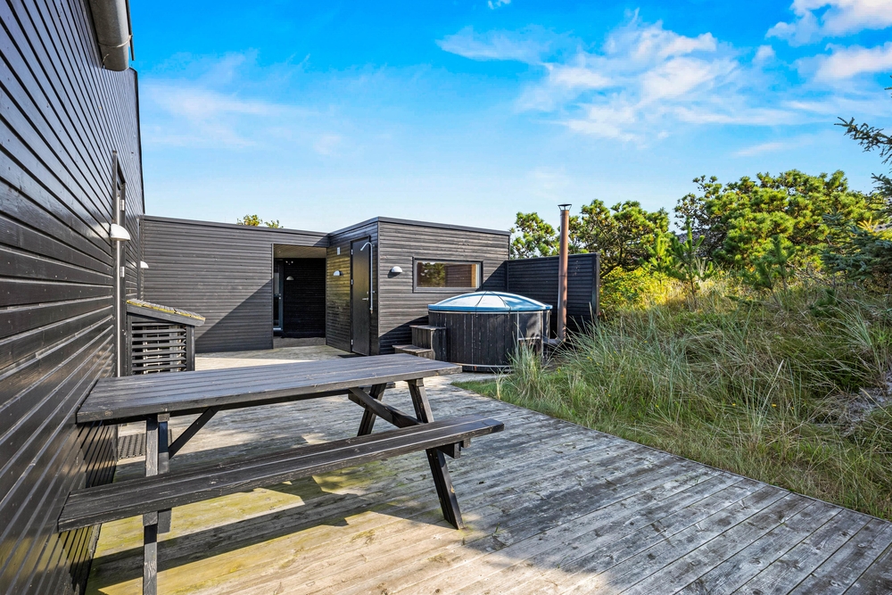 Sommerhuset på Ternevej 6A indbyder til lidt ekstra luksus i form af både vildmarksbad, udesauna og udebruser*, som I kan finde på terrassen. Efter en dukkert i havet, kan resten af sandet skyldes af ved udebruseren, og hvis I vil slappe af eller nyde varmen, står både udesauna og vildmarksbad til jeres rådighed. Så hop måske i vildmarksbadet og nyd et godt glas under åben himmel.