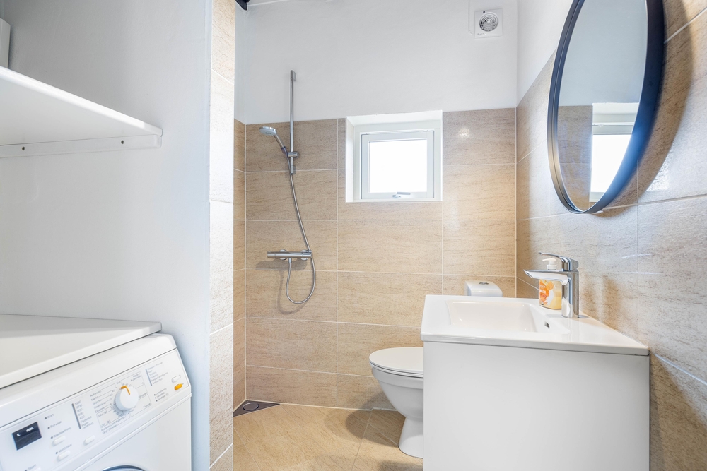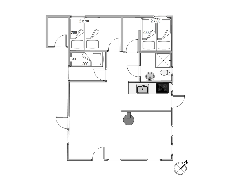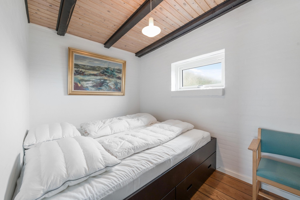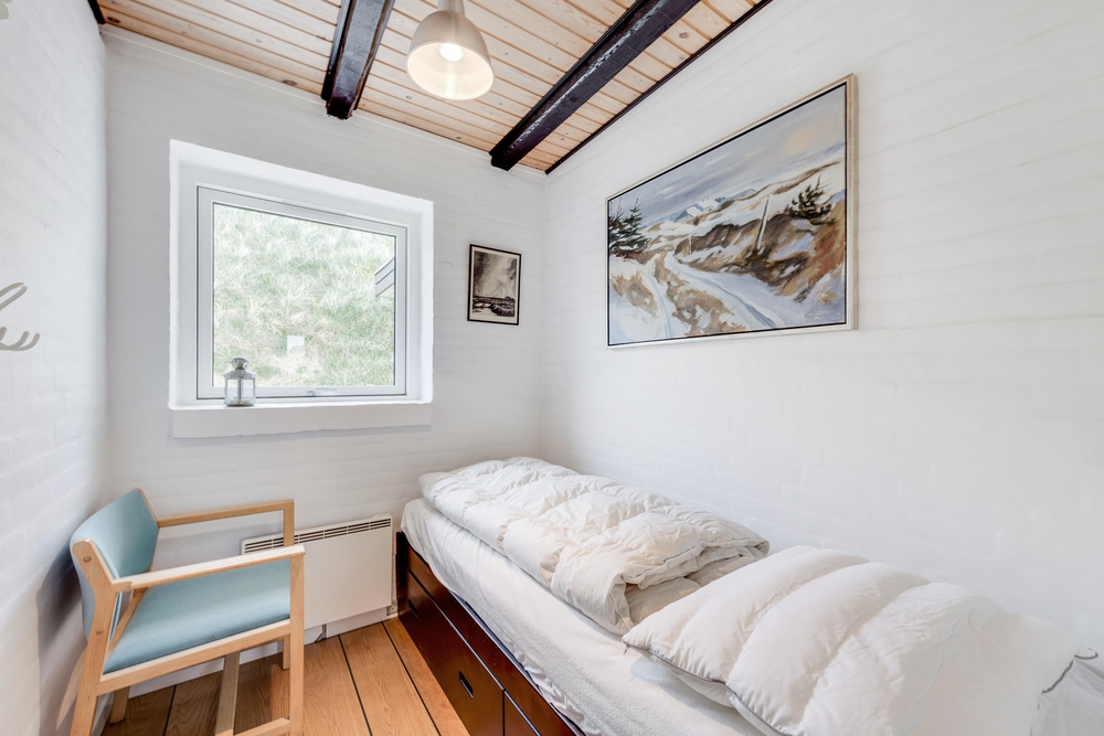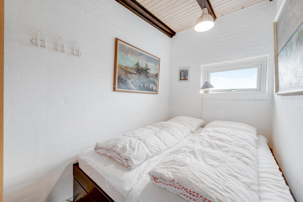 Efter en dejlig dag kan I finde til ro i en af sommerhusets soveværelser ? de 5 sovepladser fordeler sig på 3 soveværelser. På sommerhusets badeværelse finder I en vaskemaskine, så der er mulighed for at vaske jeres tøj under jeres ferie ? her er også gulvvarme, så I ikke får kolde fødder om morgenen.