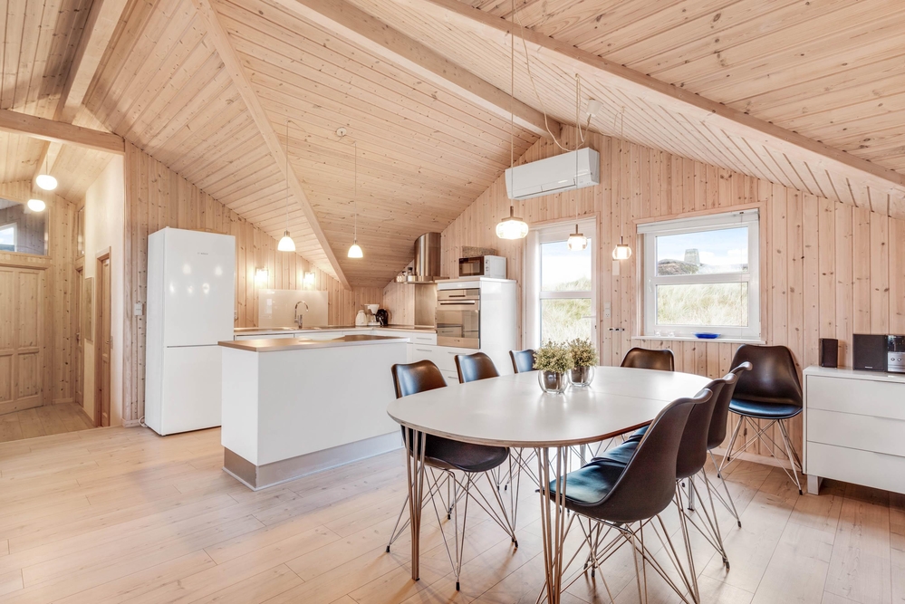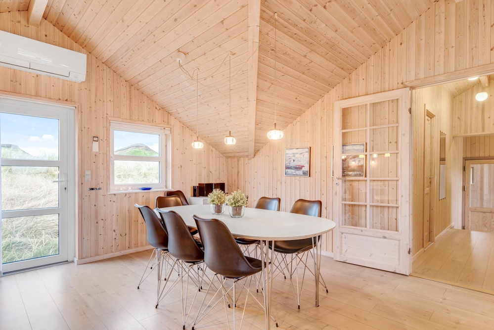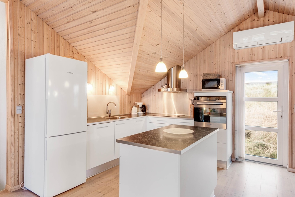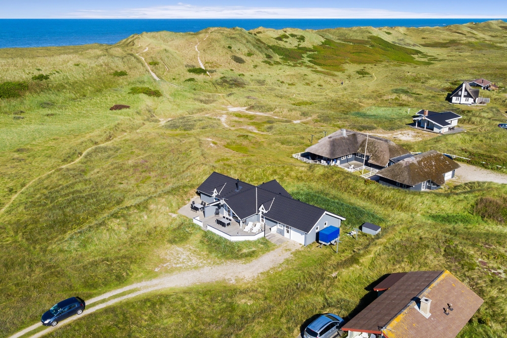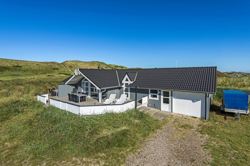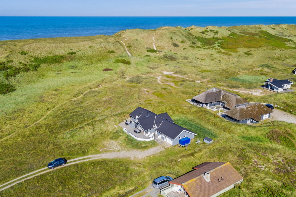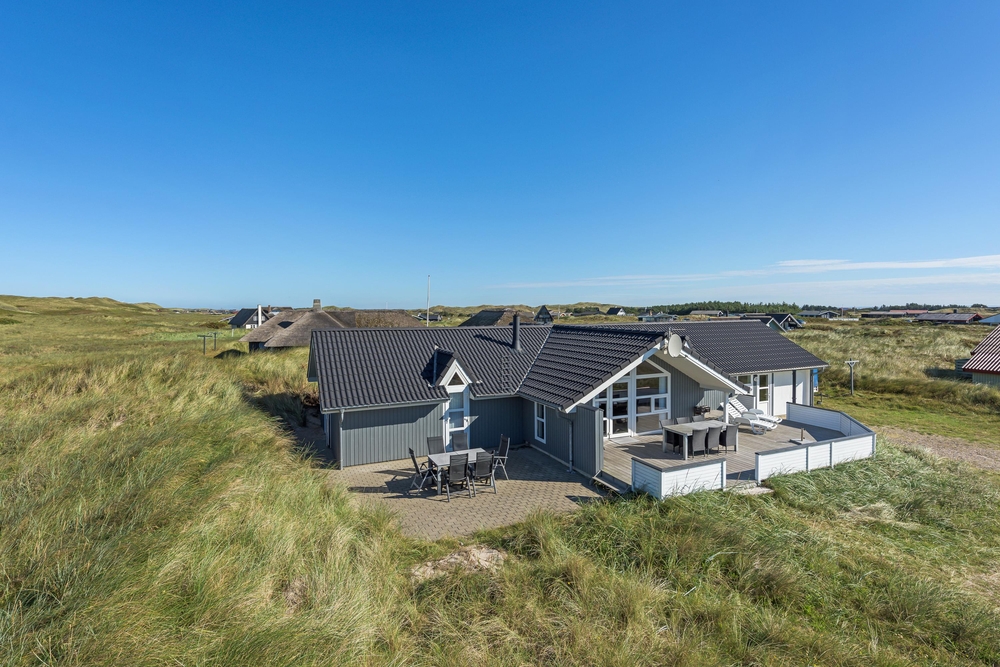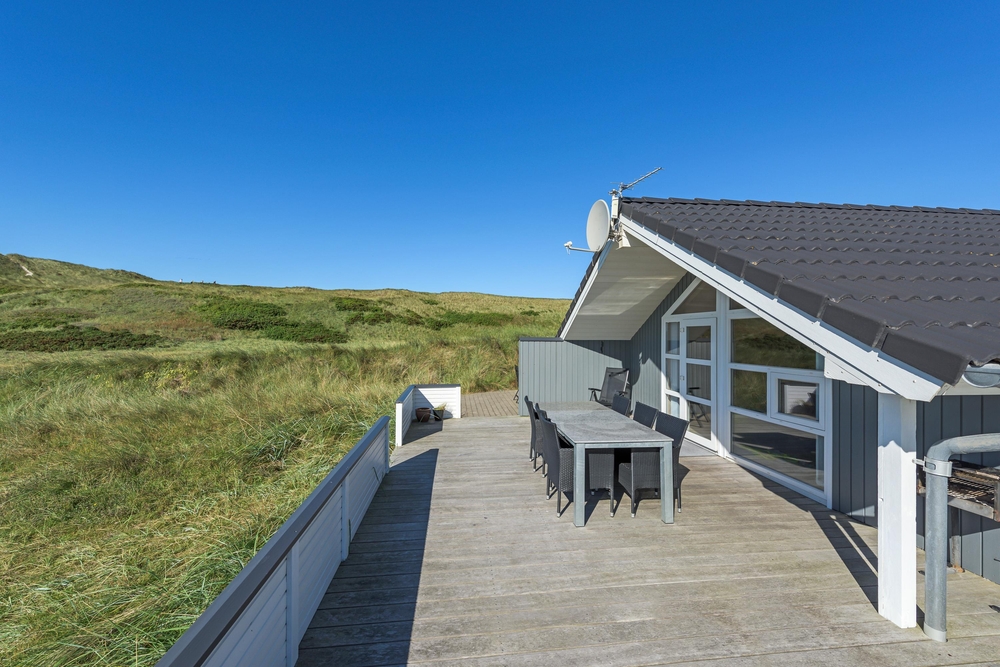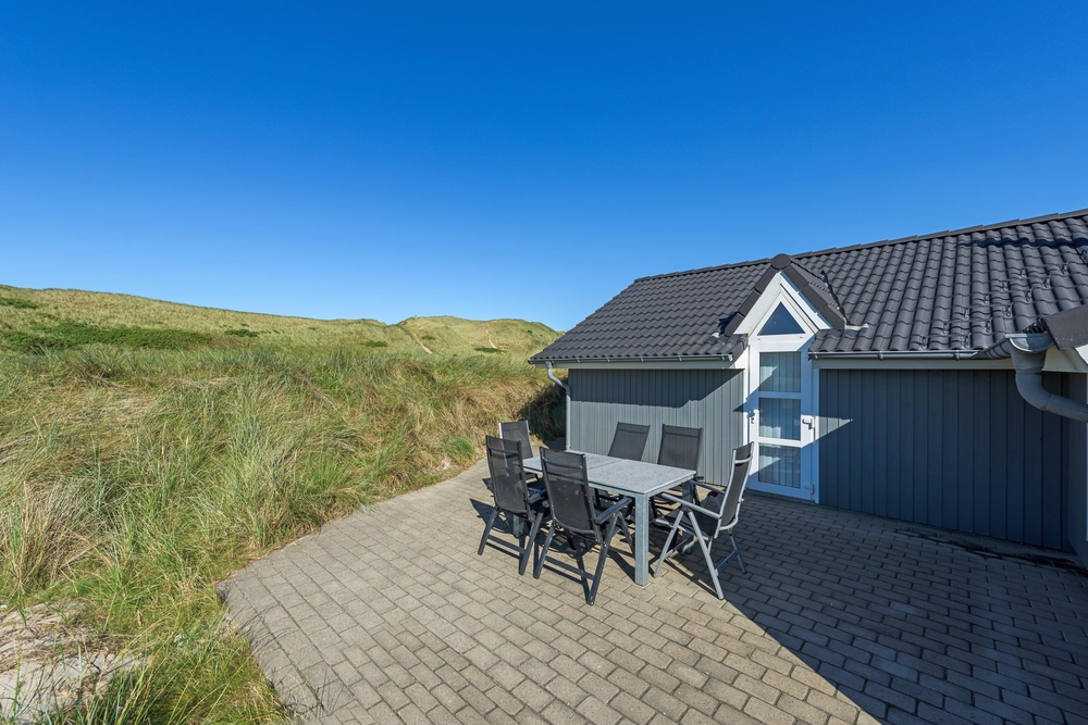 Med sin fremragende beliggenhed i første række bag klitterne, er dette feriehus et ideelt udgangspunkt for en ferie med stranden lige i baghaven. På terrassen kan I nyde solen hele dagen, mens I har en fantastisk udsigt til klitterne omkring jer.
