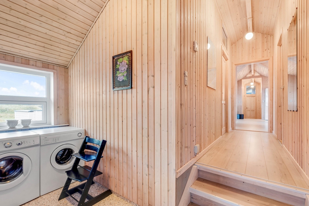 Der er gulvvarme i hele sommerhuset, og skulle I få brug for at vaske lidt tøj eller håndklæder, er der både vaskemaskine og tørretumbler til rådighed.
