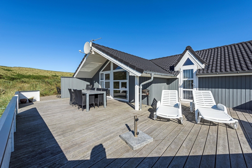 Dagen kan afsluttes med et lækkert grillmåltid i den friske havluft, mens solen går ned bag klitterne til lyden af havets brusen. Terrassen er delvist afskærmet, så I kan sidde i læ for vinden.
