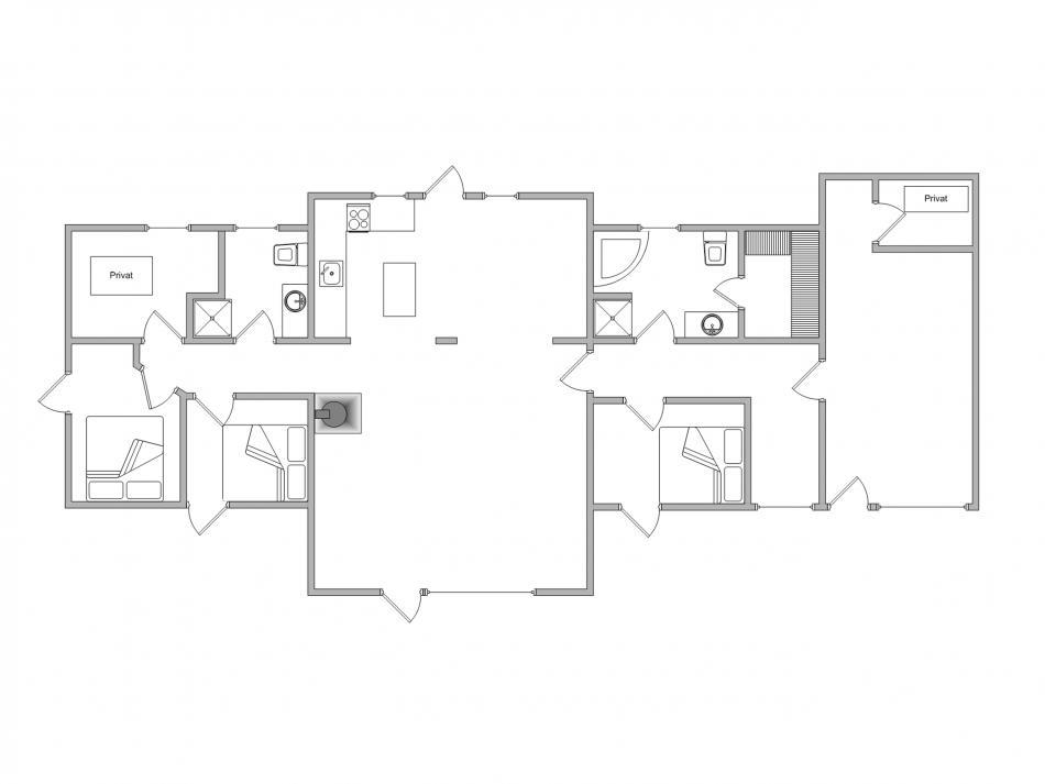 De 6 sovepladser er fordelt på 3 gode værelser med dobbeltsenge, hvor I kan få en god nats søvn og samle energi til morgendagens aktiviteter. Sommerhuset har 2 badeværelser, så der ikke opstår kø om morgenen.
