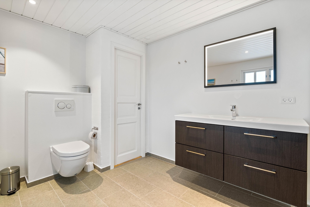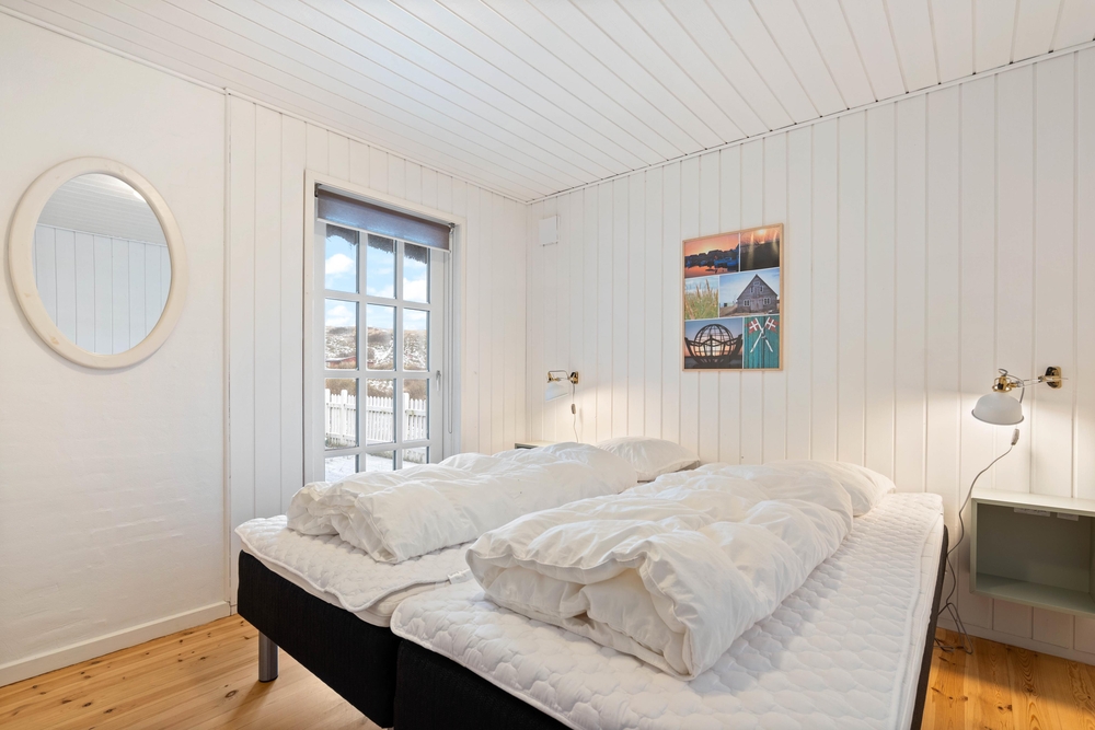 I sommerhuset finder i et stort og lækkert badeværelse med en stor brusekabine og gulvvarme. Derudover er der 3 lyse og komfortable soveværelser i huset, hvoraf alle værelserne har dobbeltseng, så i kan nyde en god nats søvn.