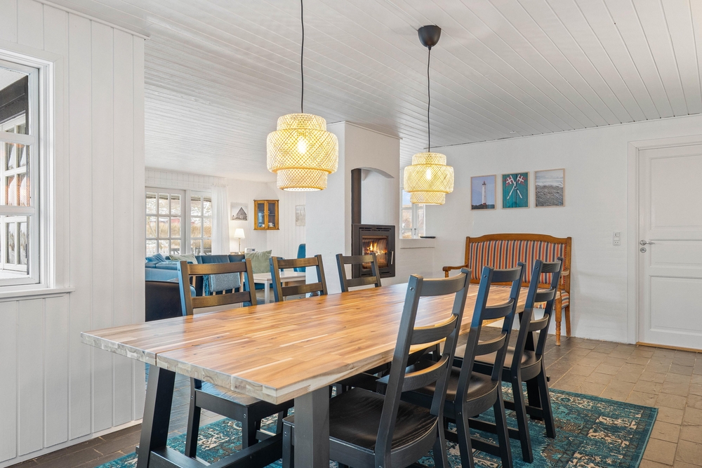 Når du træder ind i dette sommerhus, vil du straks mærke den rolige og afslappende stemning. Her er der rigtig sommerhusstemning, med brændeovn og klinkegulv. Sommerhuset fremstår lyst og indbydende med de hvide vægge og de smukke rustikke klinkegulve.
