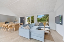 I dette stilfulde sommerhus på 180 m2 er der lagt op til samvær i det store rummelige køkken/alrum, hvor der er plads til, at hele familien kan se en god film sammen eller benytte sig af billardbordet. Der er også mulighed for at benytte sig af det skønne poolområde, hvor der er plads til, at hele familien kan få nogle hyggelige timer sammen enten i poolen eller i den dejlige sauna.