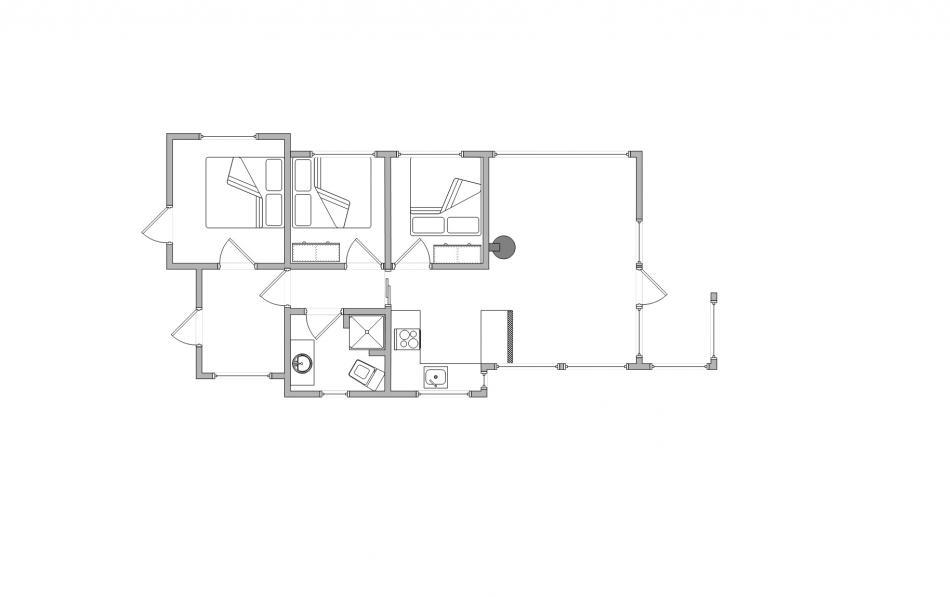 Det charmerende feriehus har på sine 63 velindrettede kvadratmeter plads til 6 personer. Husets sortmalede facade falder godt i med den omkringliggende natur og indenfor er indretningen personlig og indbydende. Materialerne er enkle, og de hvidmalede lofter og spær skaber en rolig base ? ja sommerhuset er bygget i klassisk sommerhusstil.