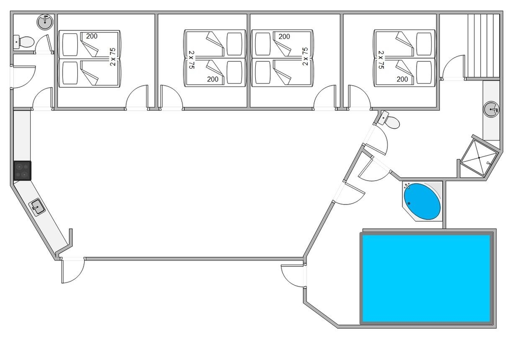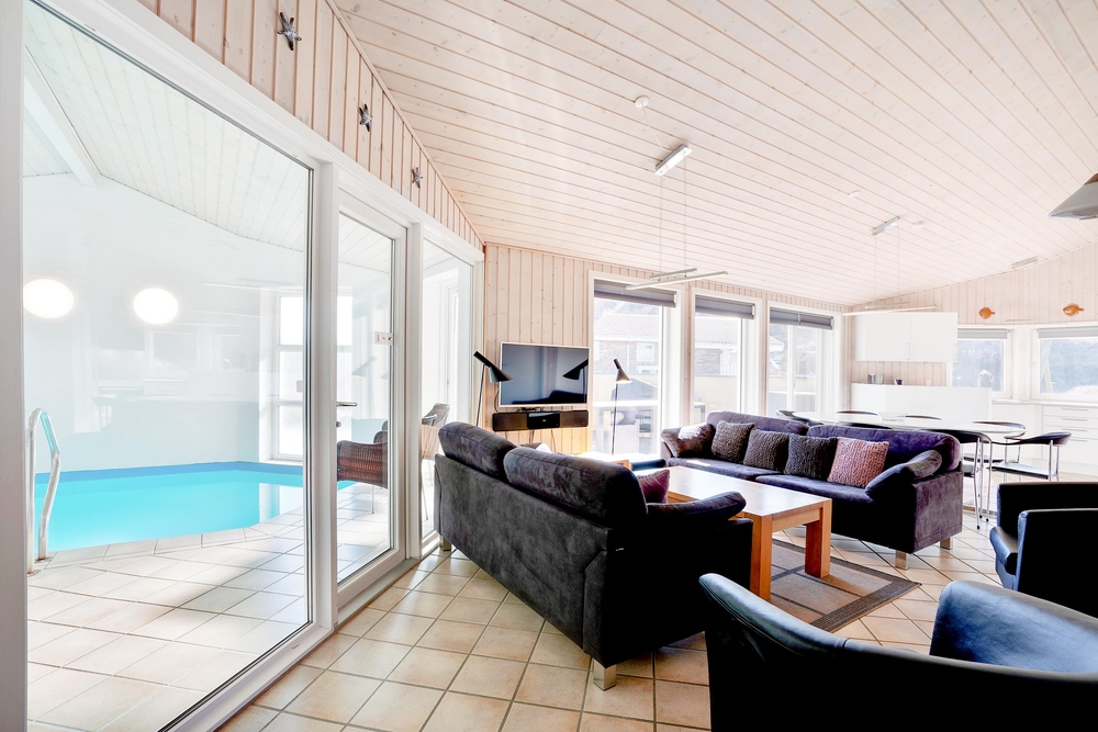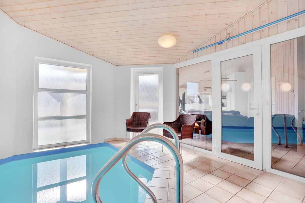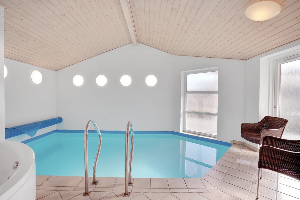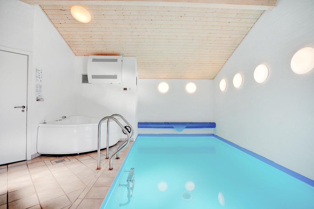 Fra stueafdelingen er der store glaspartier ind til poolafdelingen, så man på afstand kan holde øje med børnenes leg. Poolen og spaen er perfekt til en lidt køligere dag, eller efter en lang dag i naturen. Her kan der tilbringes mange timer med sjov og leg i vandet.