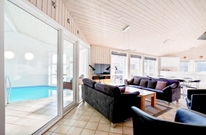 Tæt på Hvide Sande i det populære feriehusområde Årgab og kun 100 meter fra Vesterhavet ligger dette fine og hyggelige feriehus med både indendørs pool, spa og sauna. Poolhuset er til 8 personer ? perfekt til storfamilien eller 2 familier, der ønsker at holde ferie sammen.